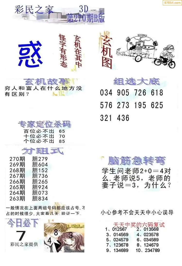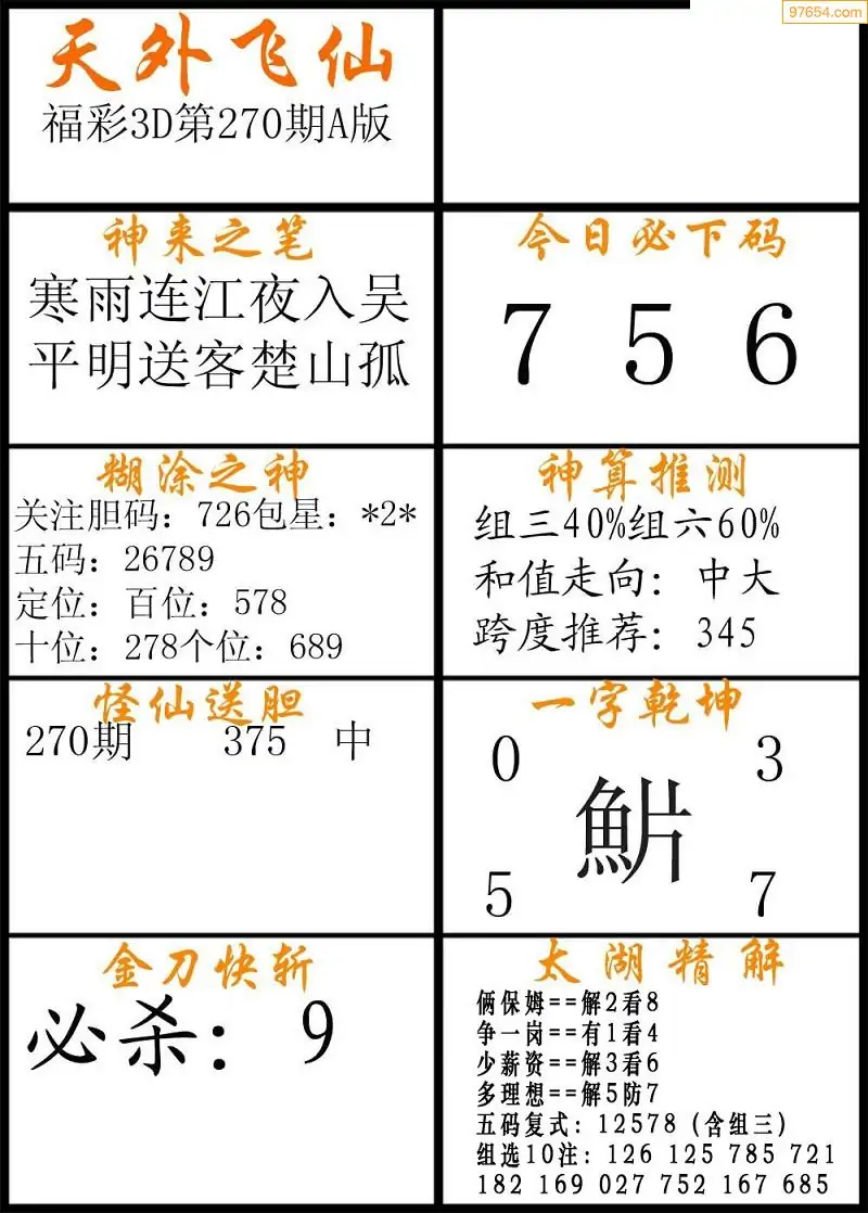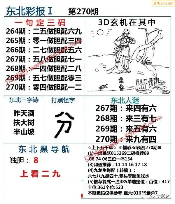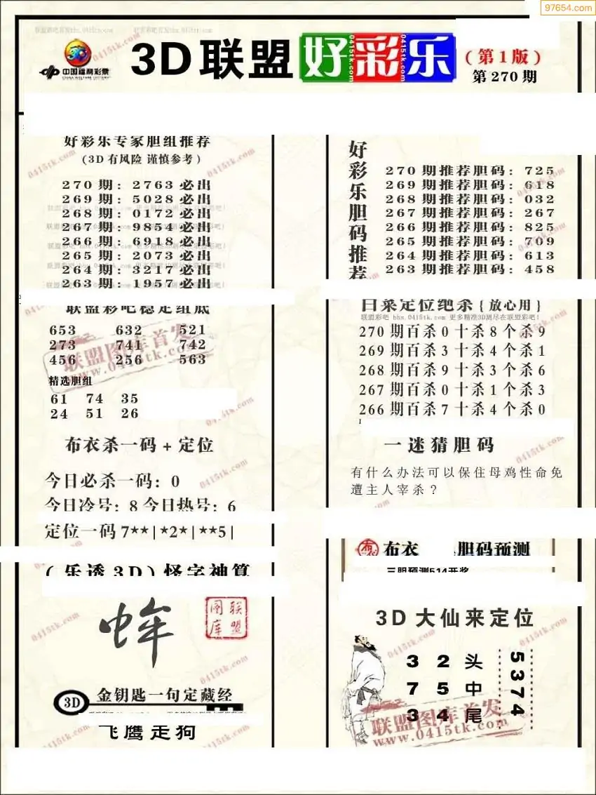福彩3D270期天牛彩吧套图整合总汇