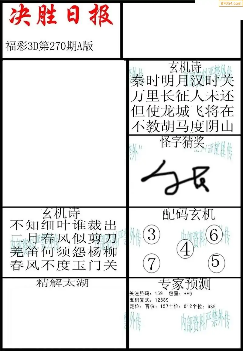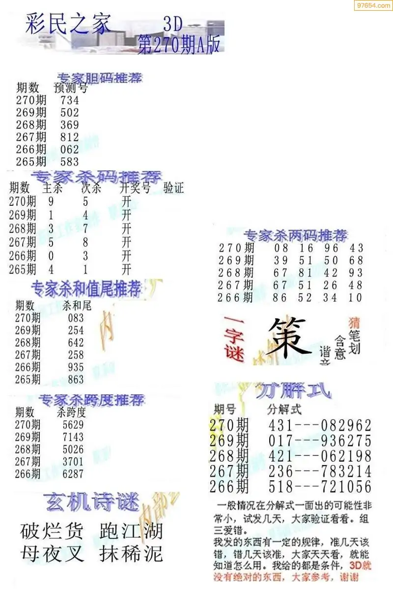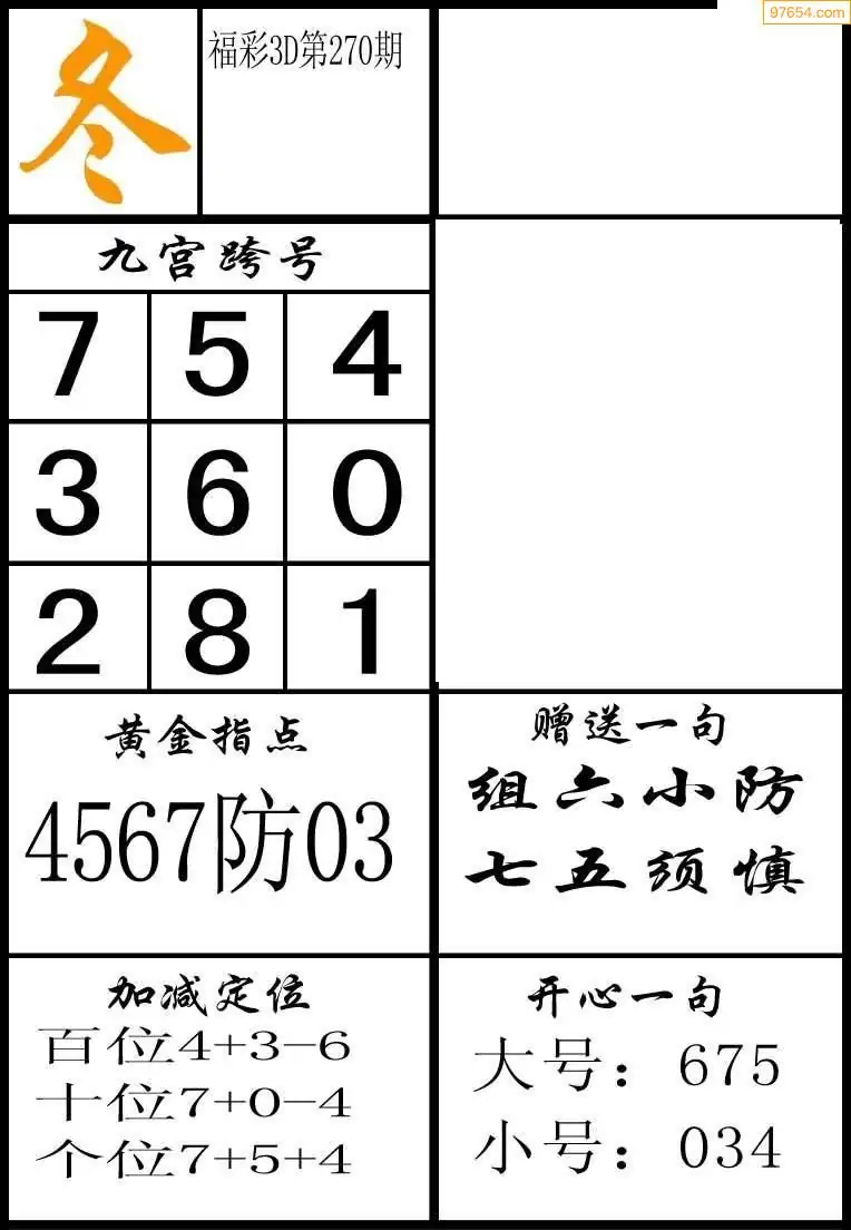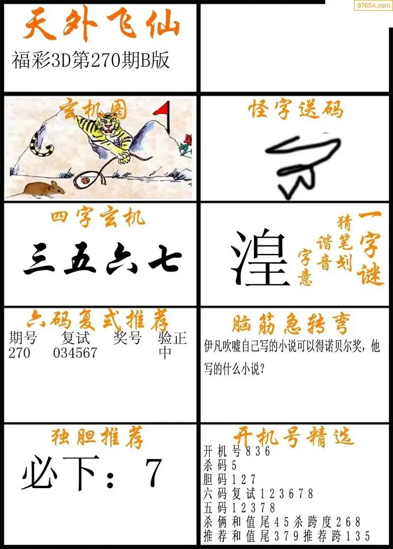 福彩3D270期天牛彩吧套图整合总汇