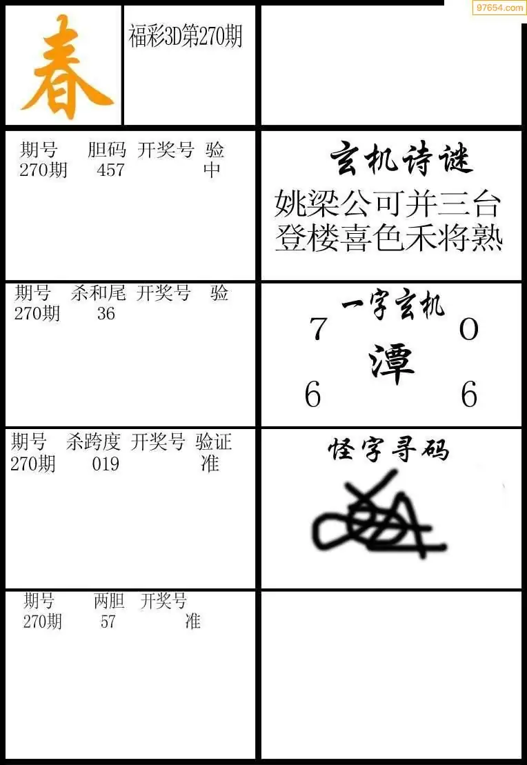 270期福彩天机壁怪字图