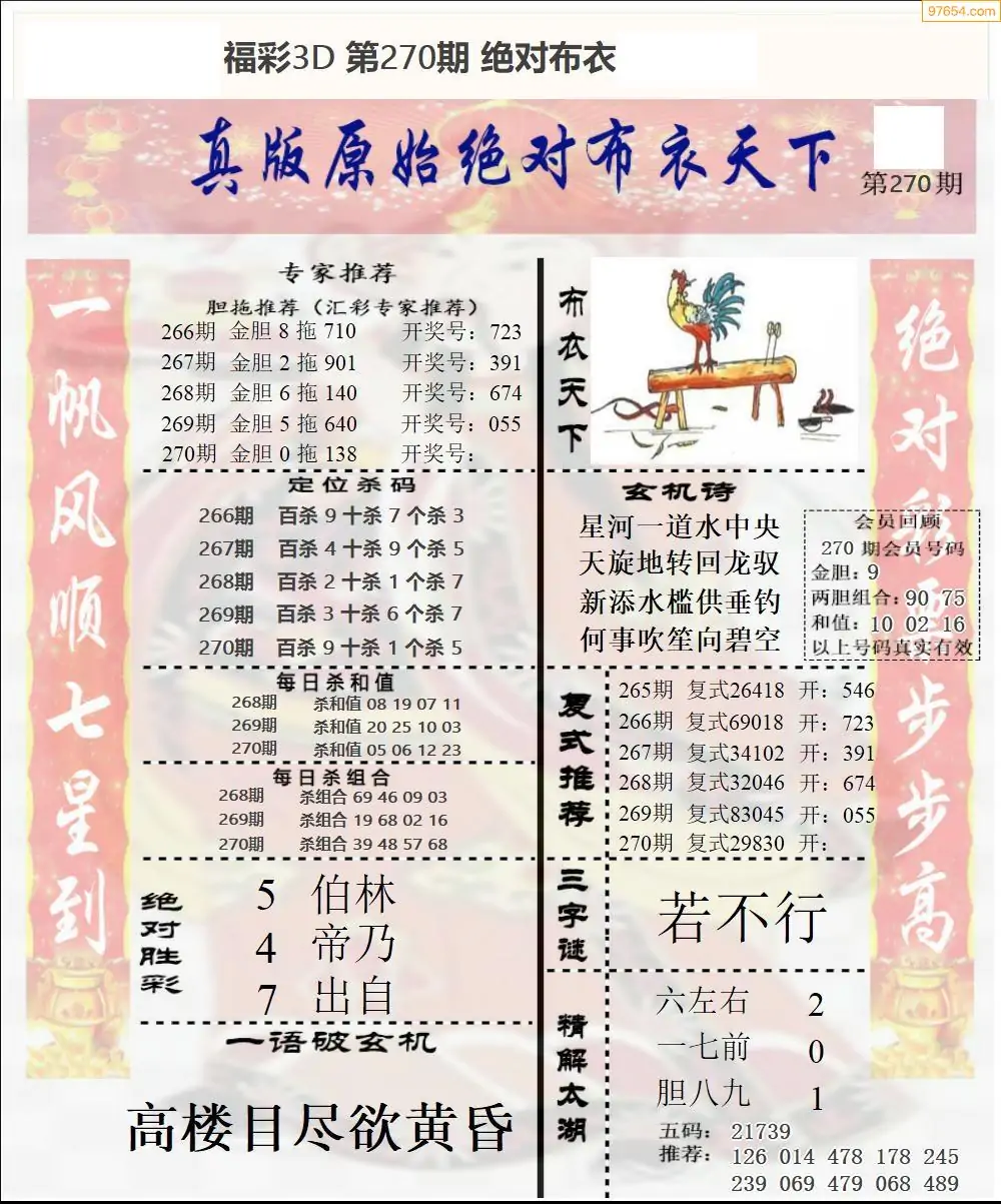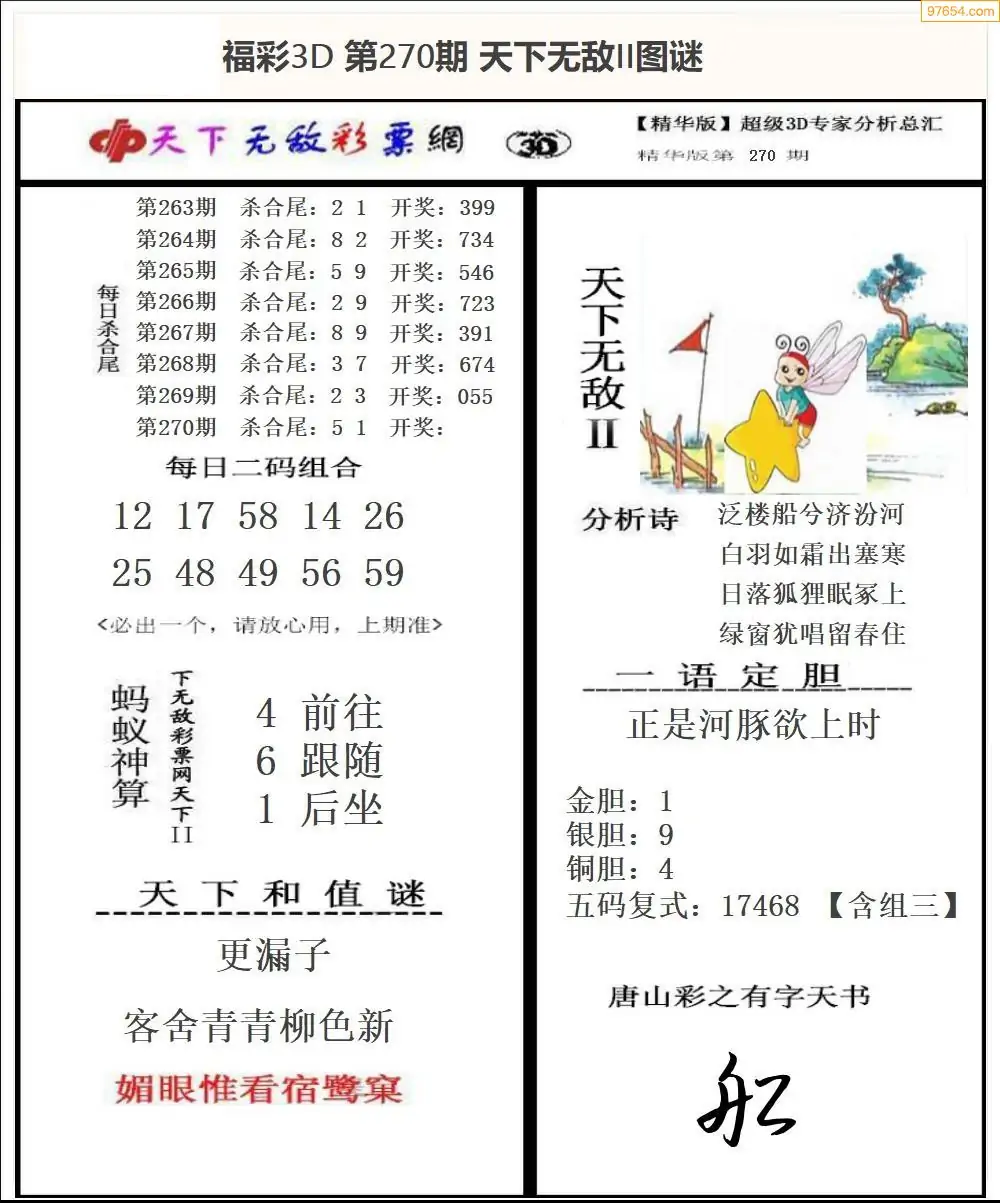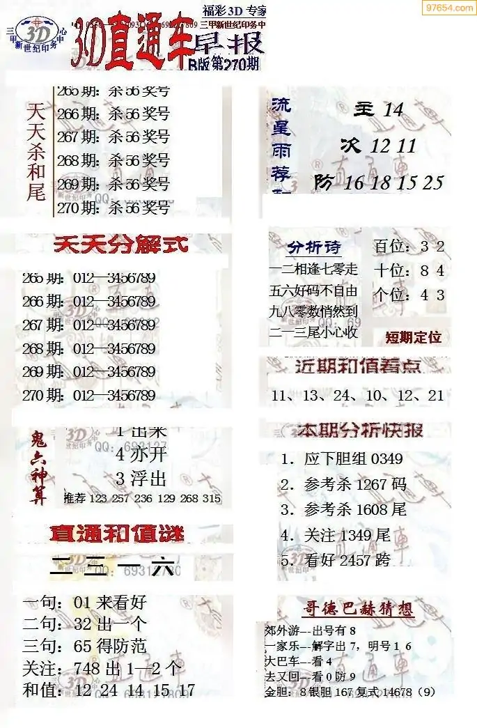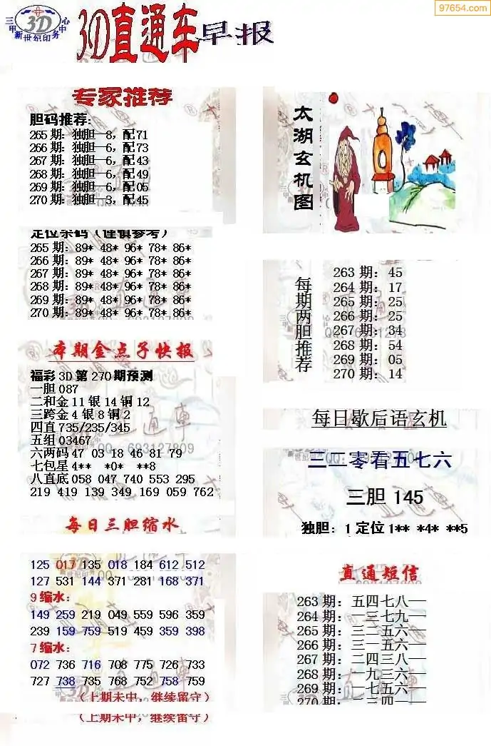 25年270期3d选号彩报图谜画谜
