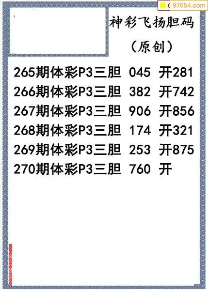 25270期神彩飞扬体彩P3三胆图谜
