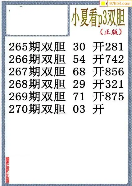 25270期小夏双胆体彩P3图谜