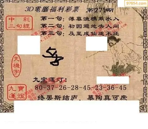25271期福彩3D正版天宇和值谜