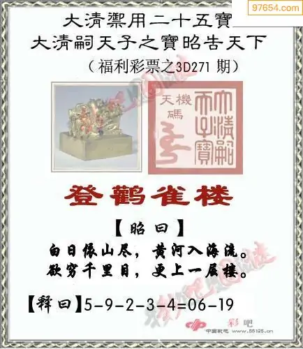 25271期福彩3D正版天宇和值谜