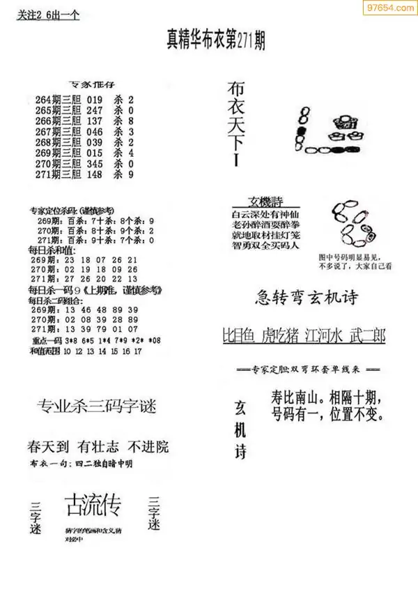 271期真版布衣神算专家推荐