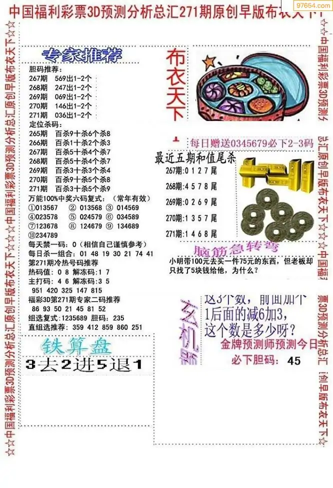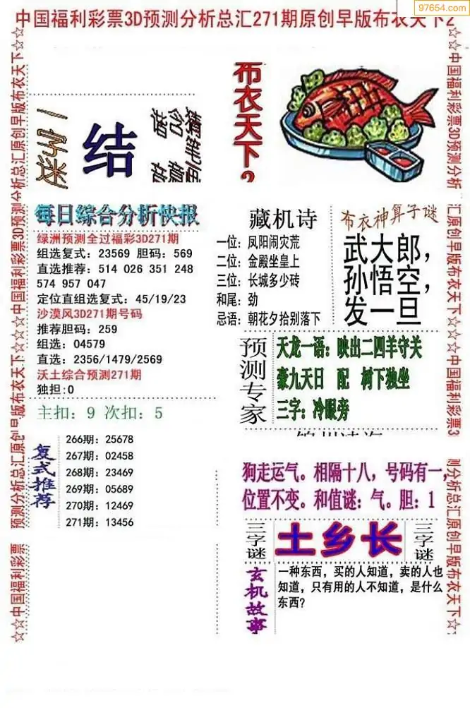 福彩271期3d真精华布衣+布衣早报(转载)
