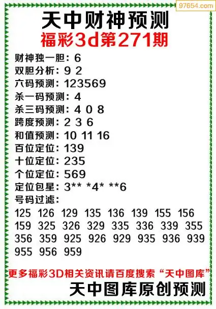 271期财神3d综合预测分析