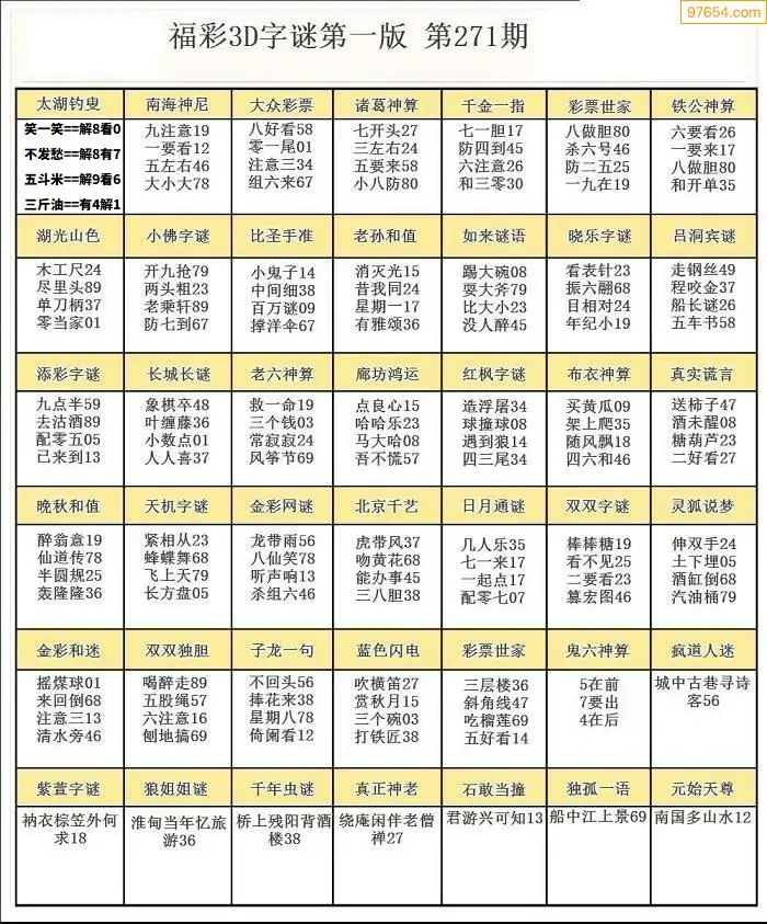 25271期3D天中原创预测字谜报