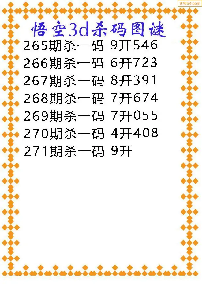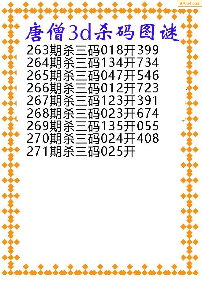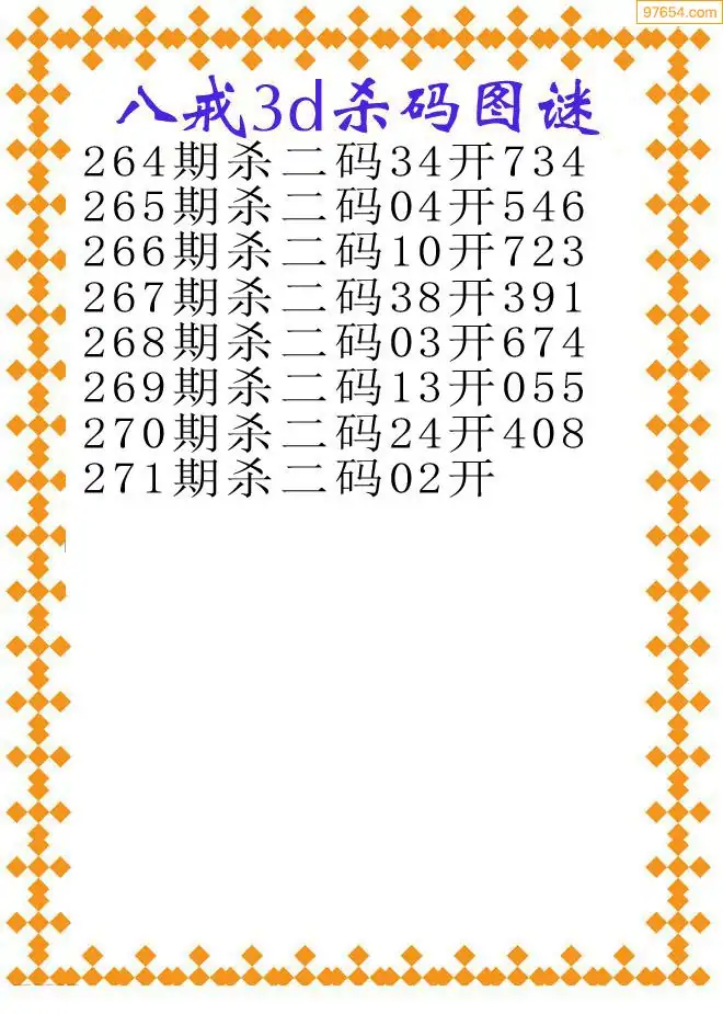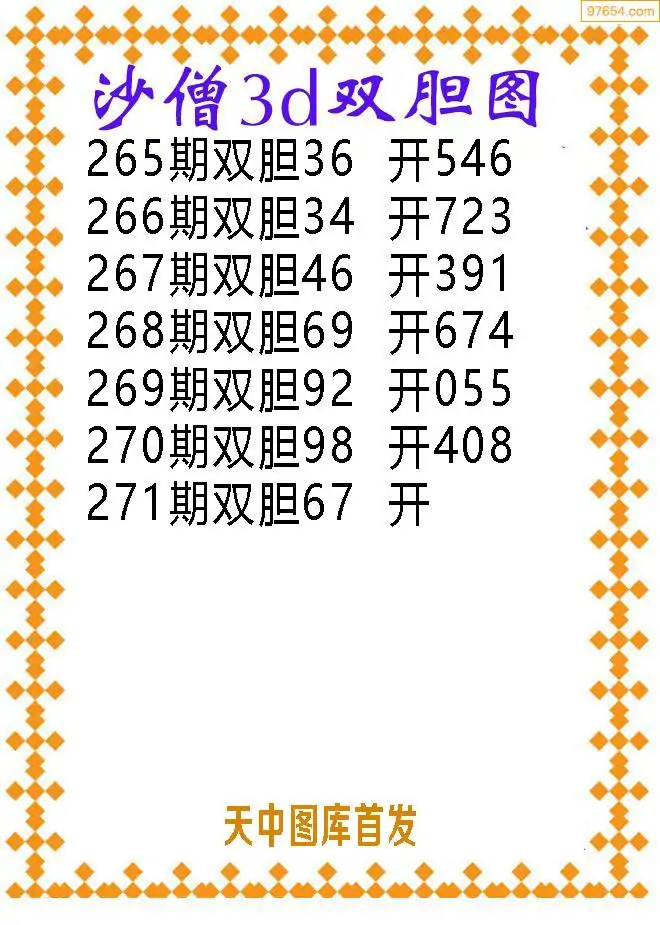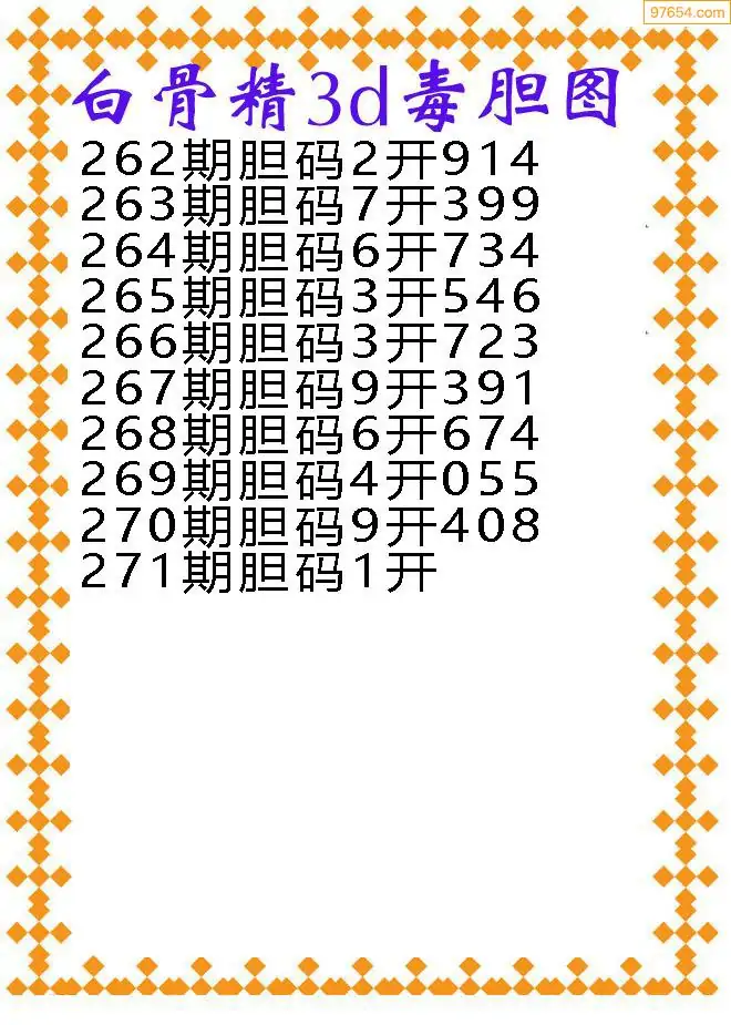 271期97654本站收集胆码出号预测