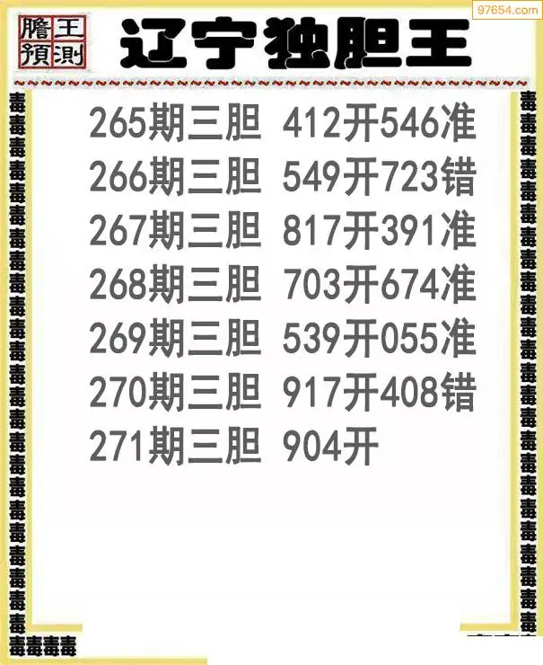 271期97654本站收集胆码出号预测