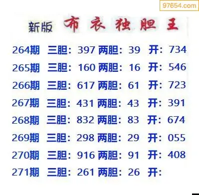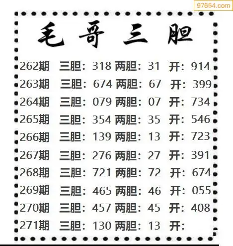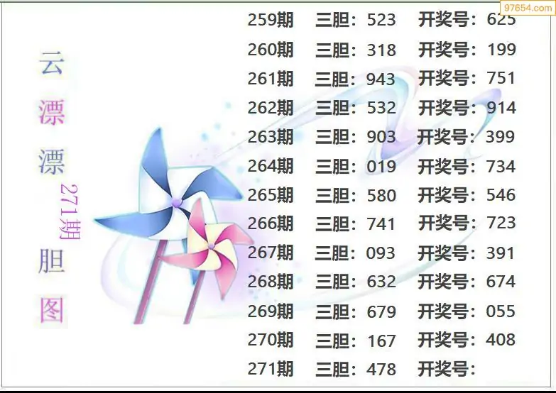 271期97654本站收集胆码出号预测