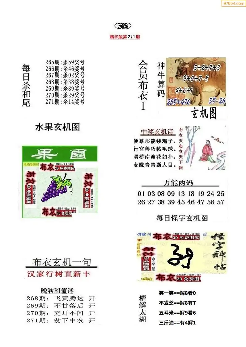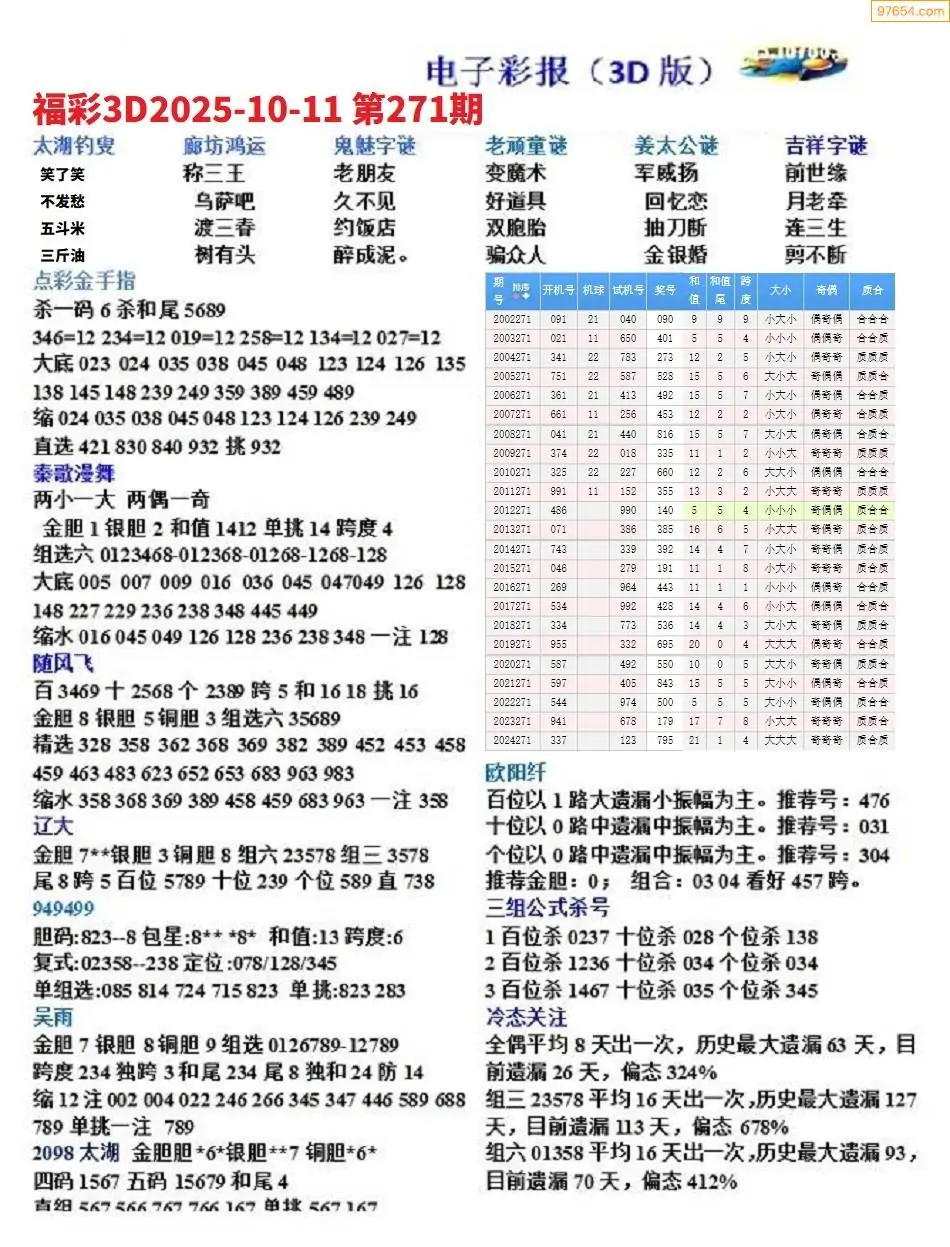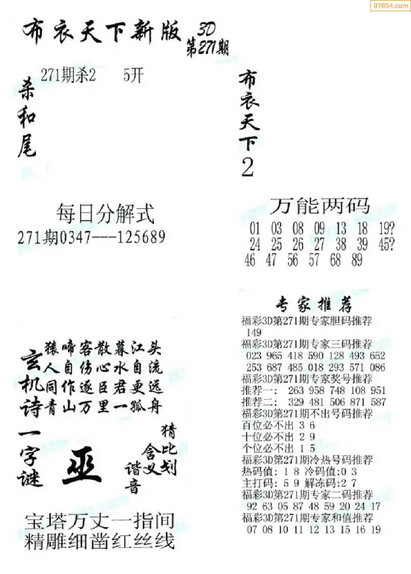 (8)25年271期今日3d各类彩报汇总