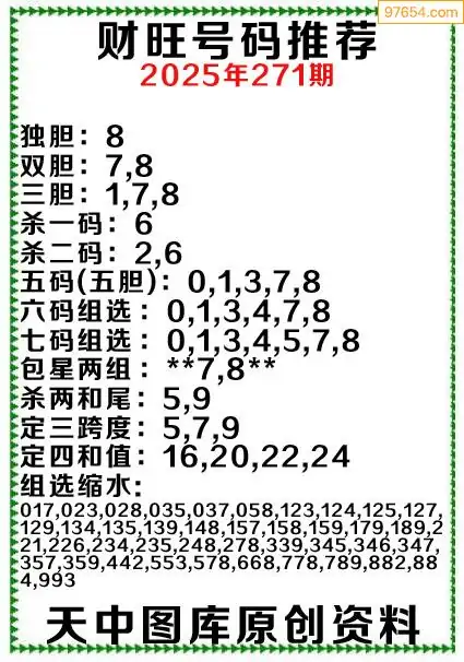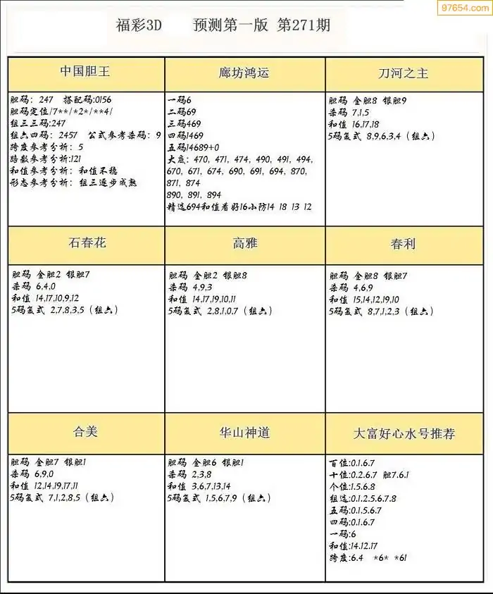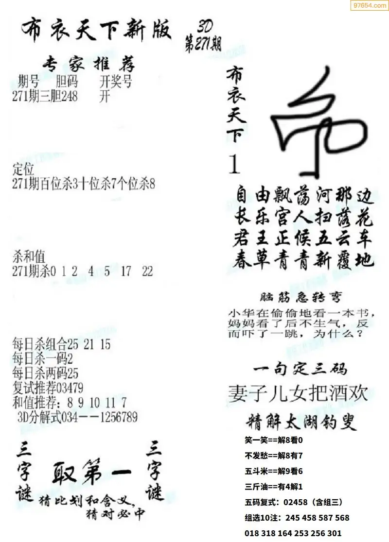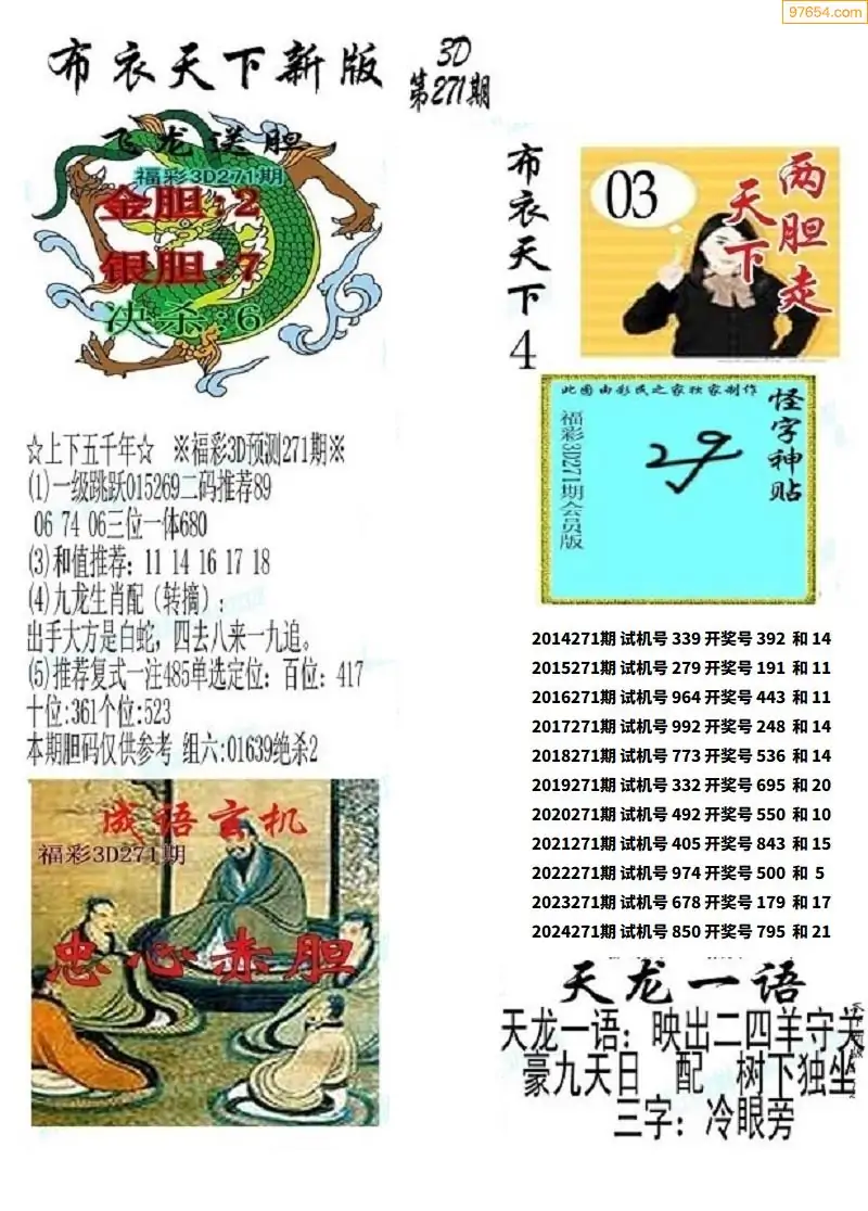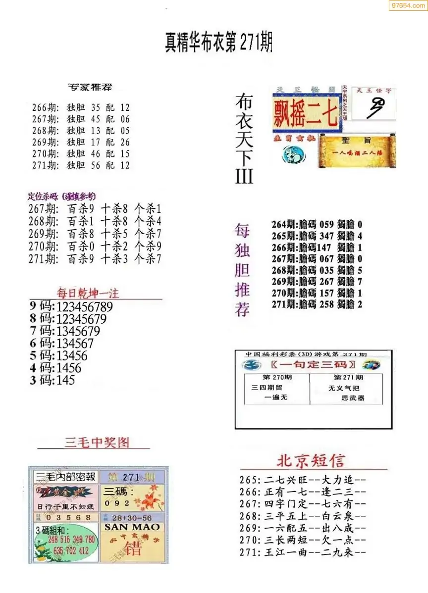 (8)25年271期今日3d各类彩报汇总