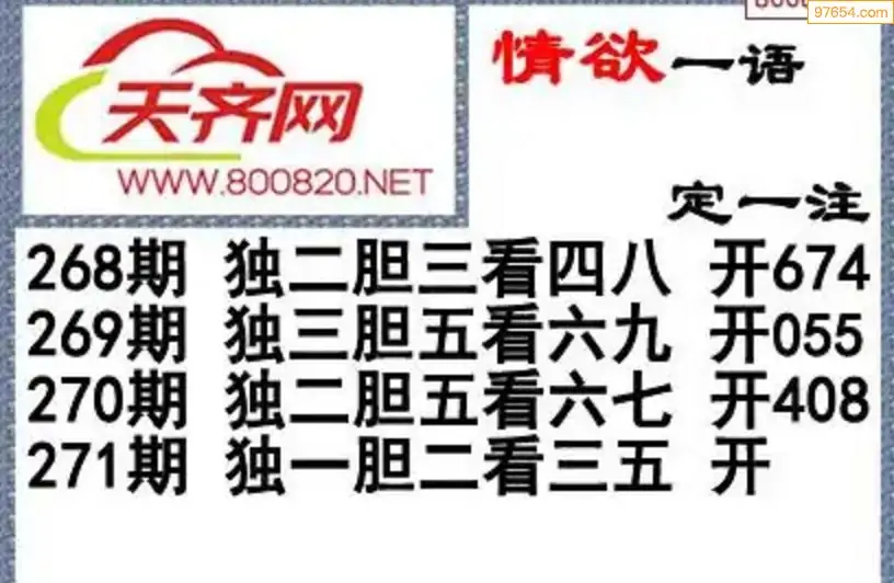 福彩3d25年271期字谜传说一句定三码