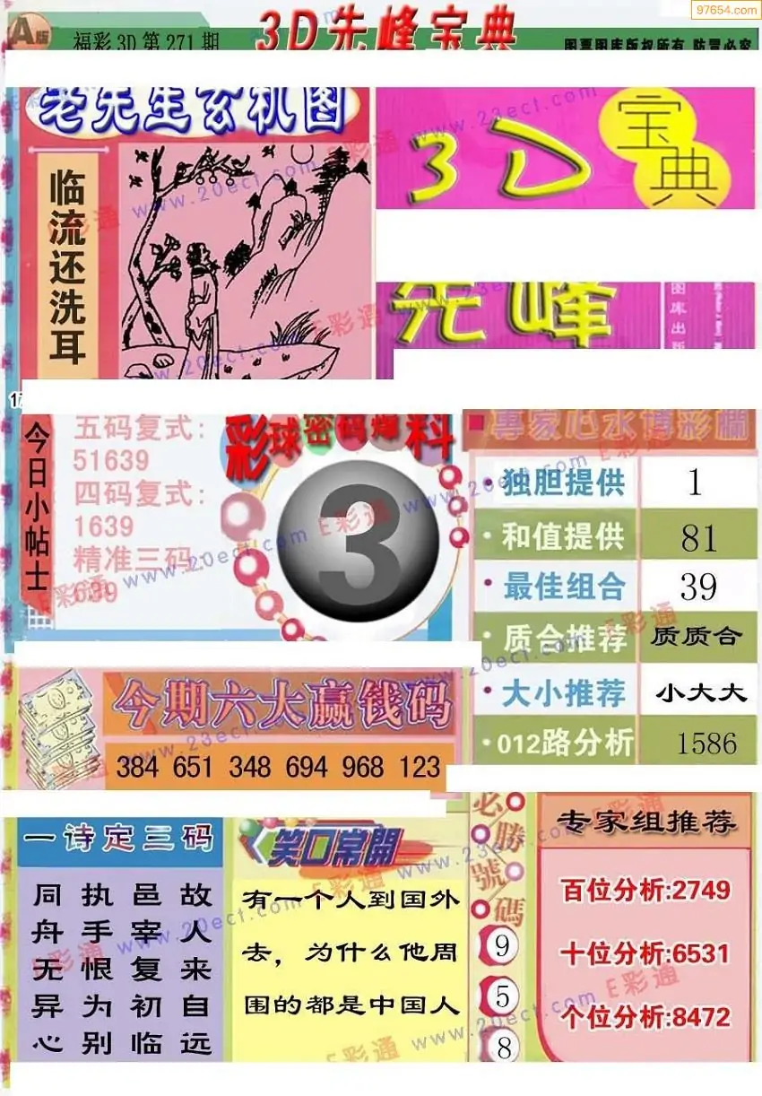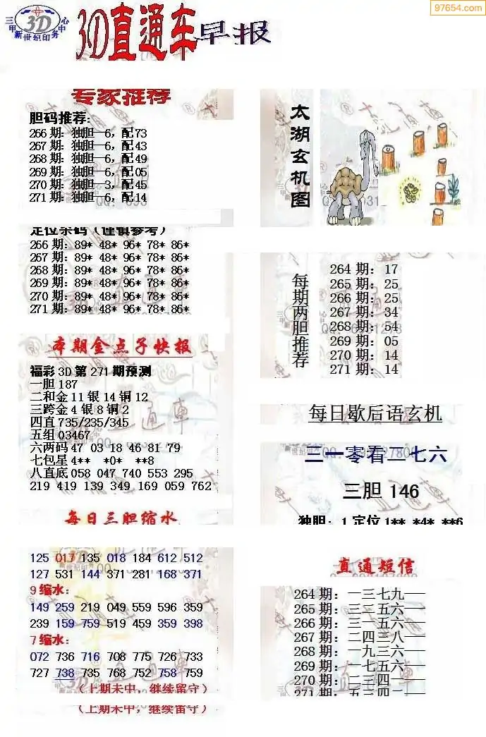 25年271期3d选号彩报图谜画谜