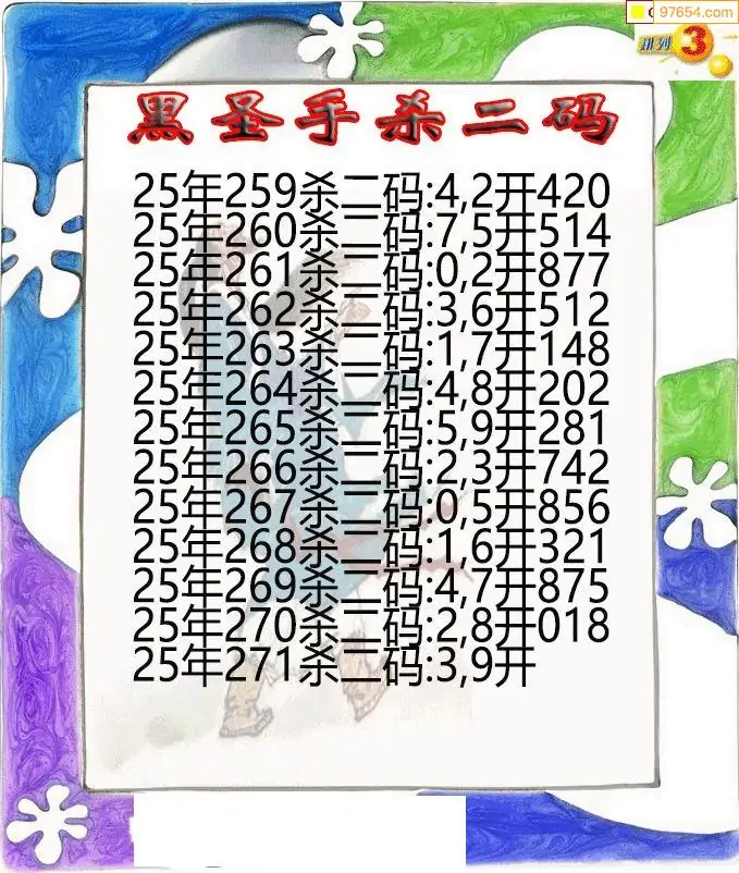 25年271期黑圣手排3杀二码图迷