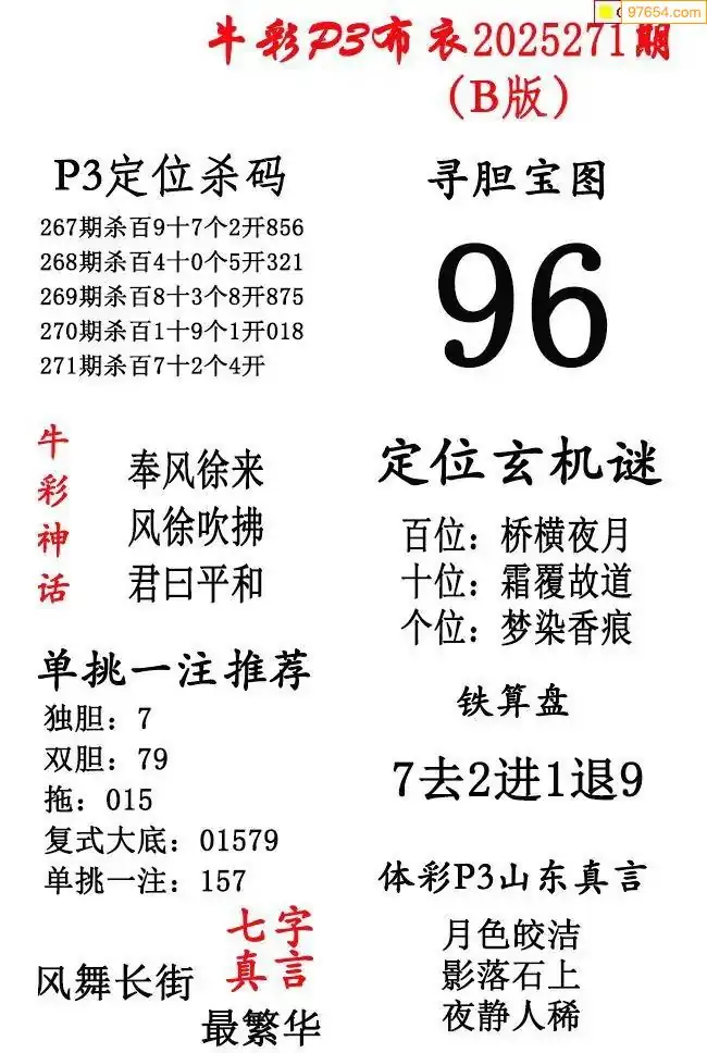 牛彩布衣271期精华版图谜