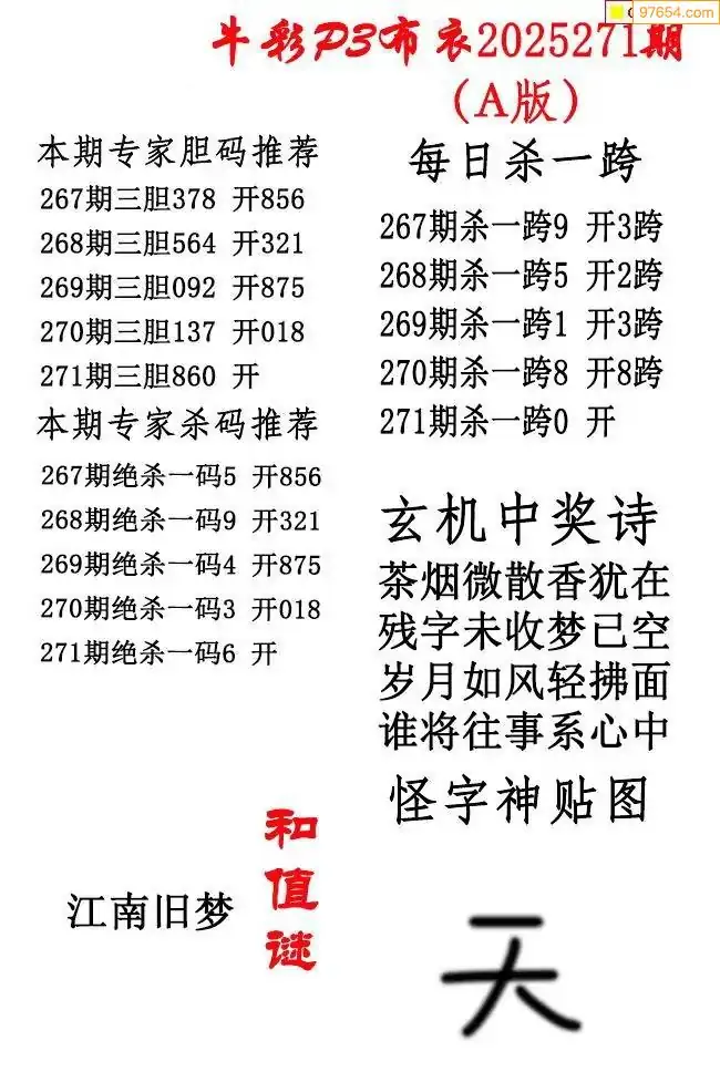 25年天吉体彩P3玄机怪字271期图迷