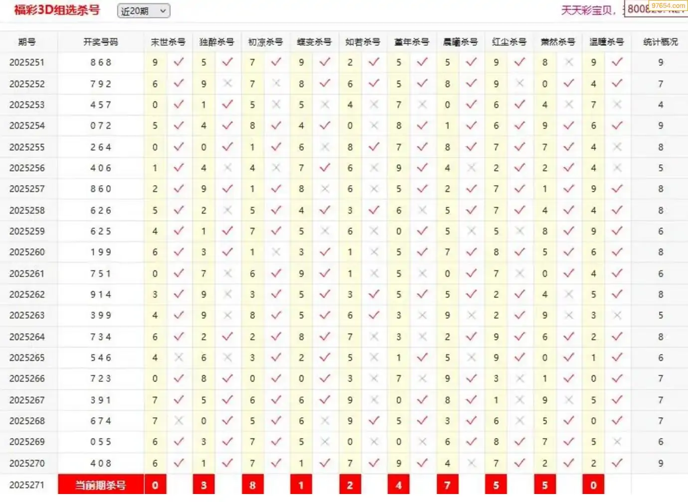 3D271期天中财神原创杀码条件汇总