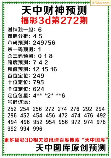 272期97654本站收集胆码出号预测