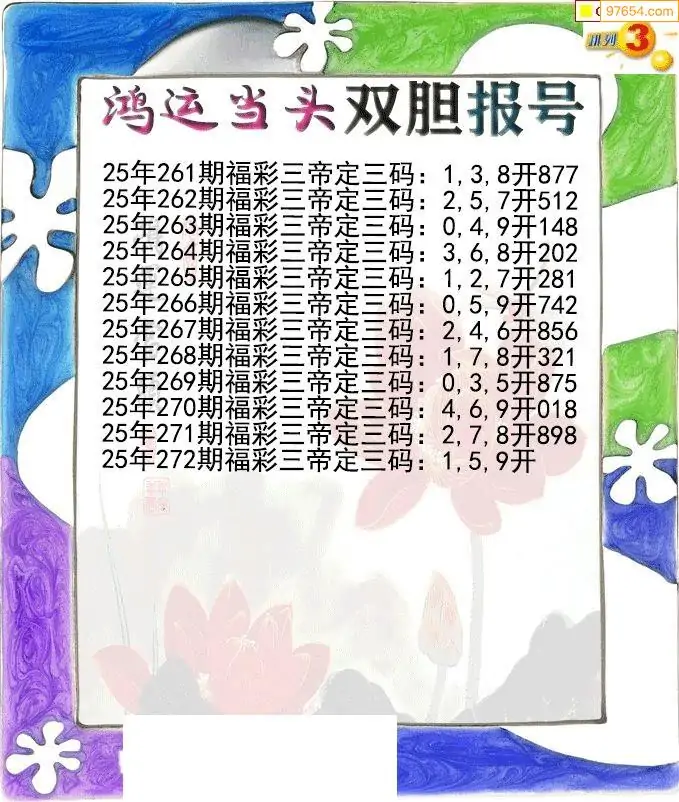 25272期鸿运当头双胆p3报号图