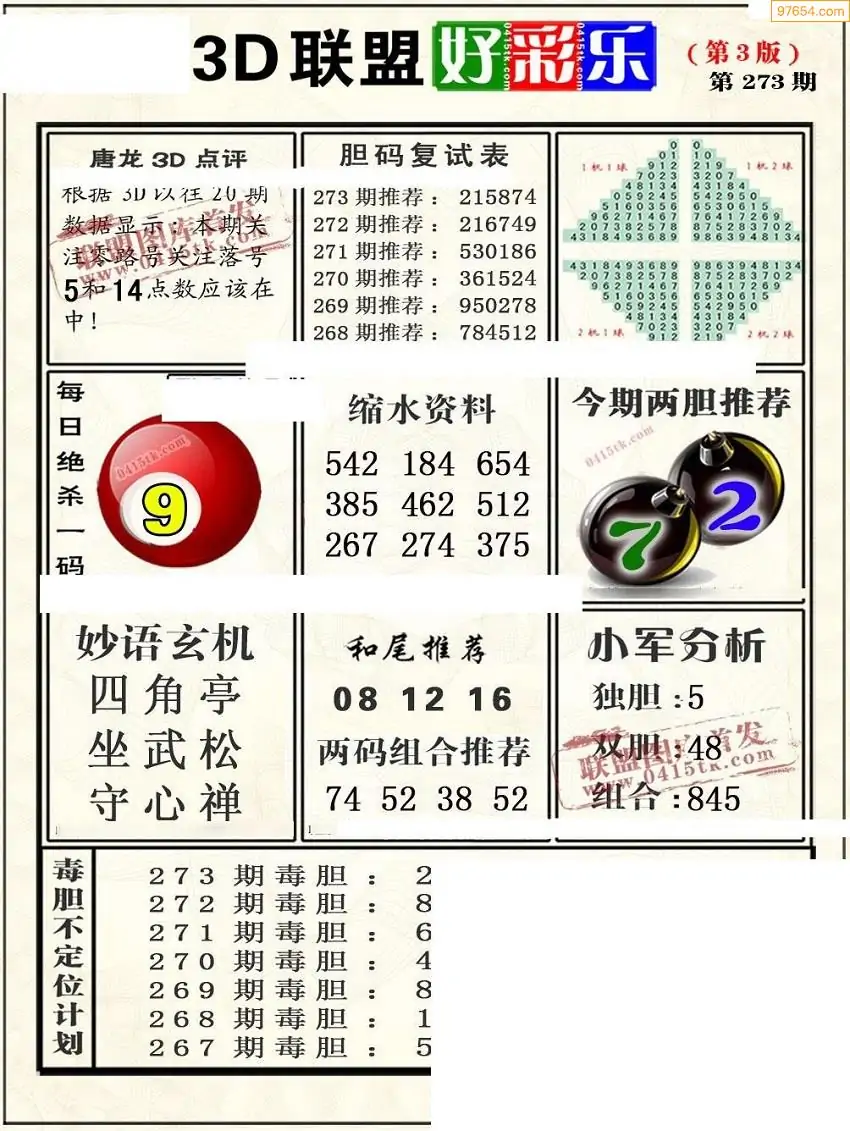 25273期3D彩民各类资料A版