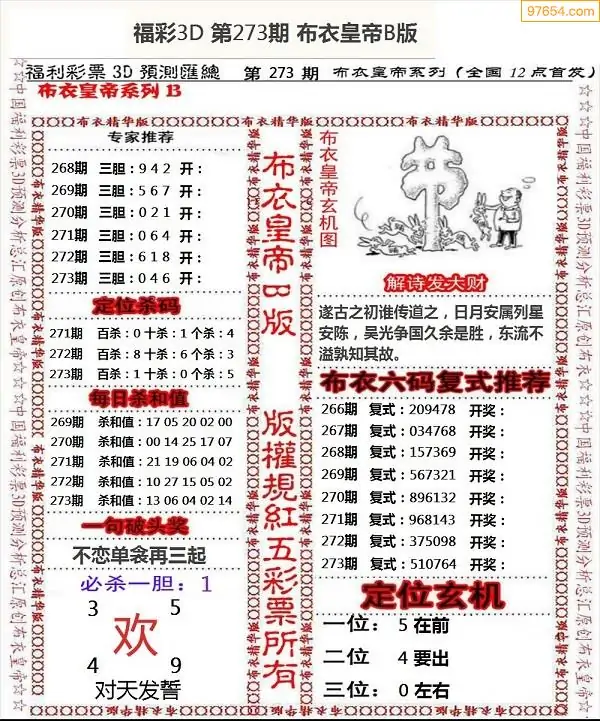 福彩3d273期新禧布衣定位杀号