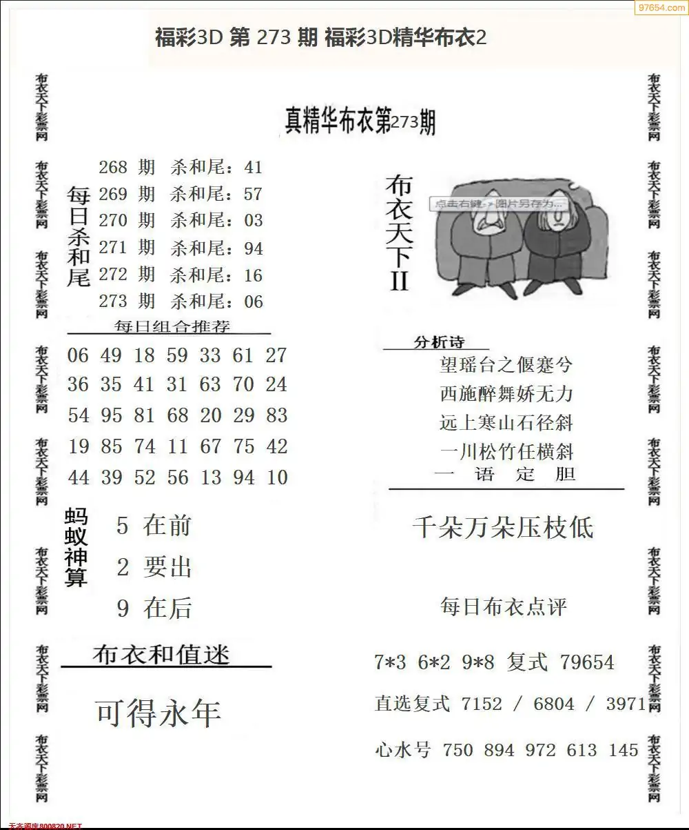 福彩273期3d真精华布衣+布衣早报(转载)
