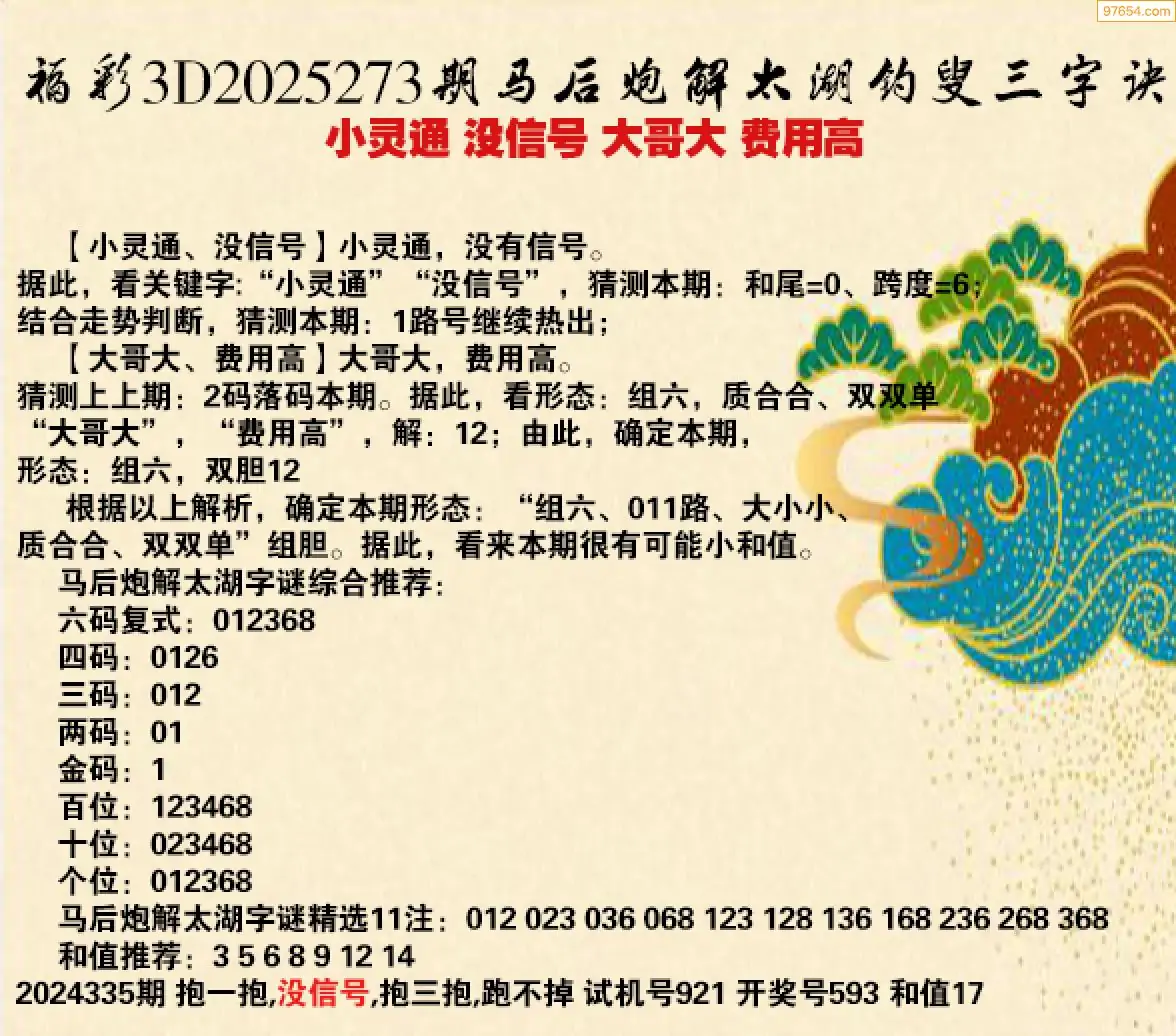 福彩3d25年273期风雨钱程解太湖玄机诗