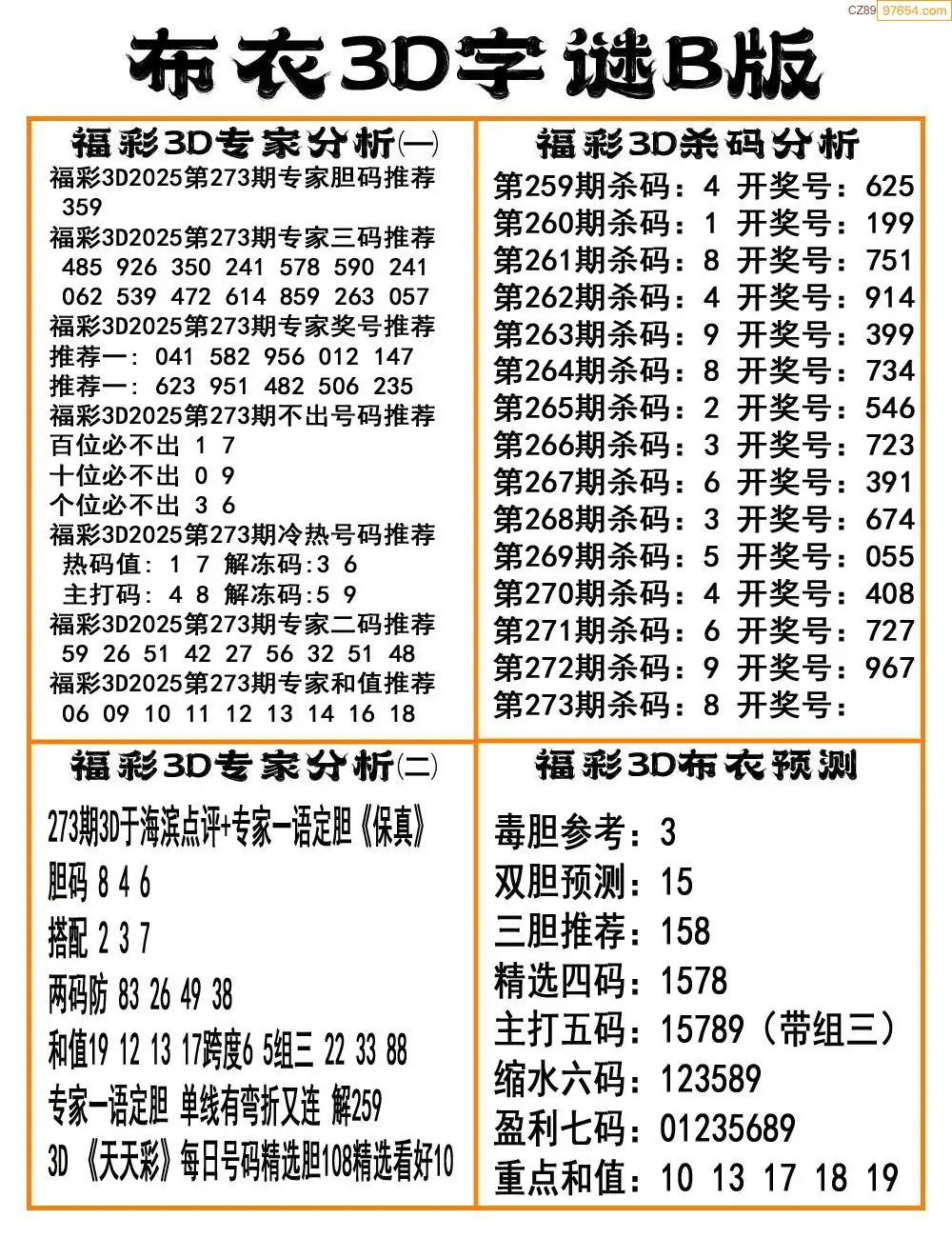 福彩25273期布衣3d字谜ab