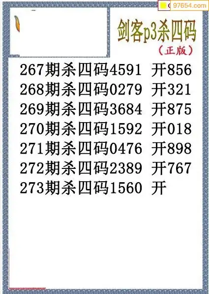 25年273期排三剑客杀码图谜