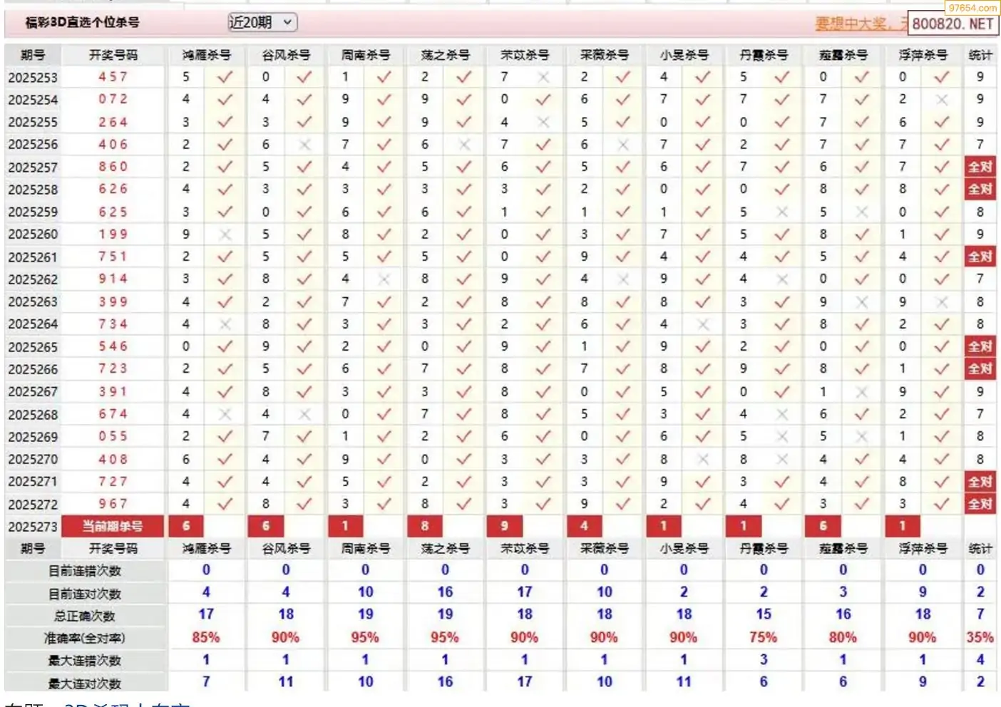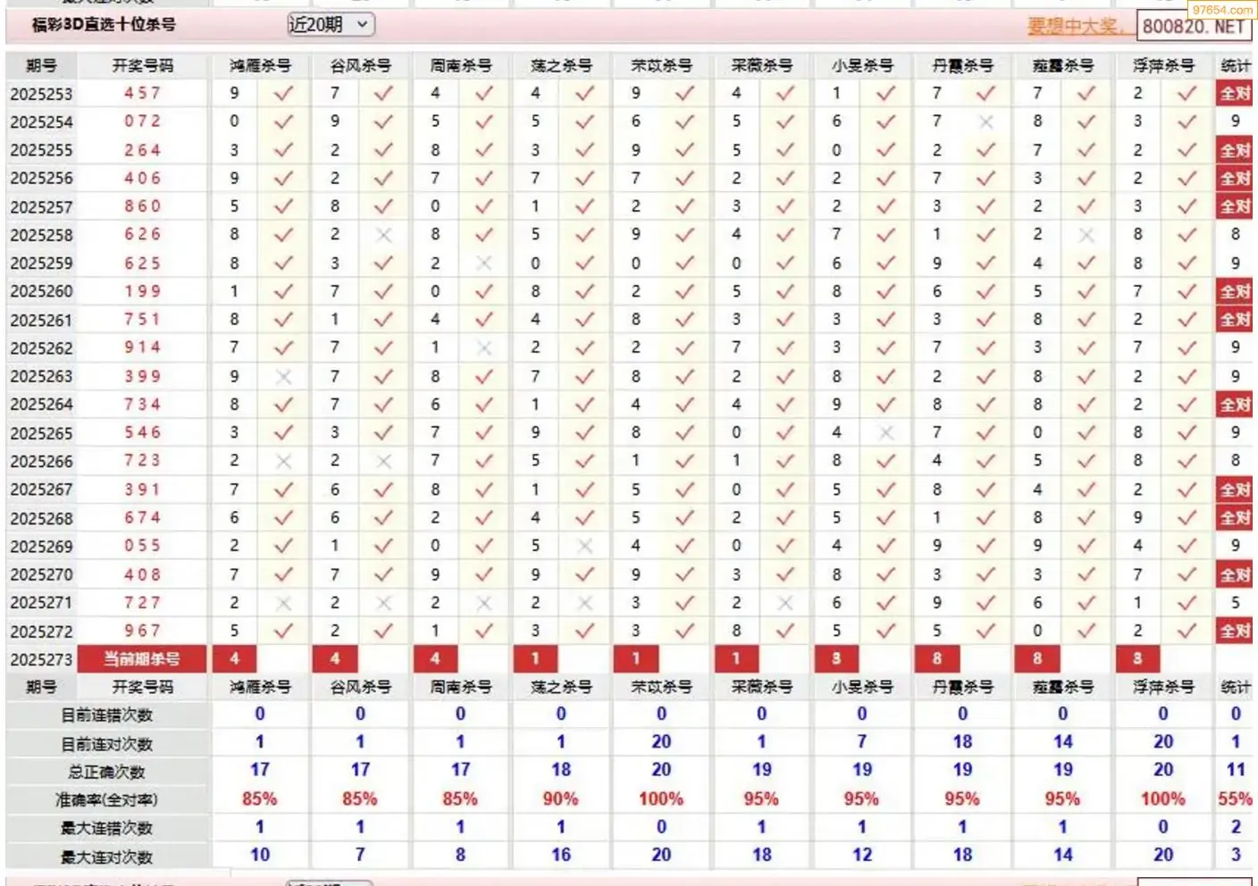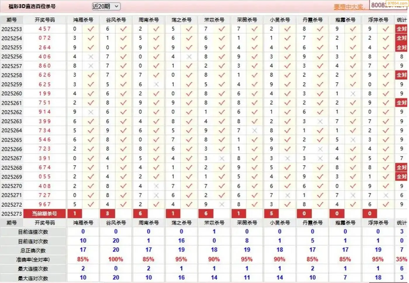 胡八一3d25年274期杀号一胆 9连中