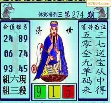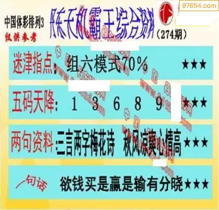 E族图274期体彩p3专家条件分析图谜