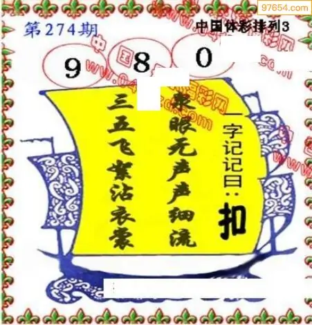 25年天吉体彩P3玄机怪字274期图迷
