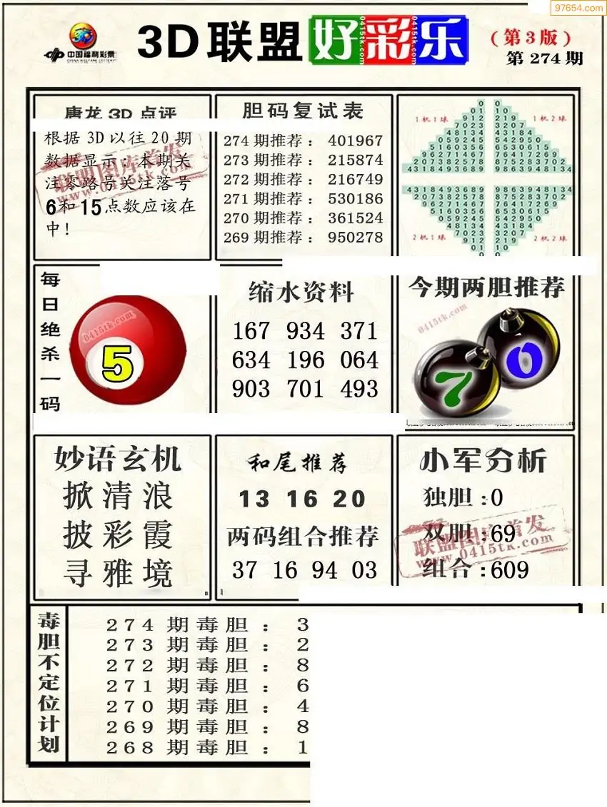 25274期3D彩民各类资料A版
