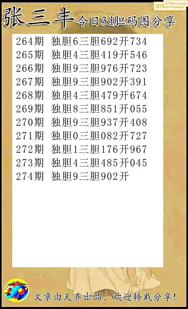 274期97654本站收集胆码出号预测