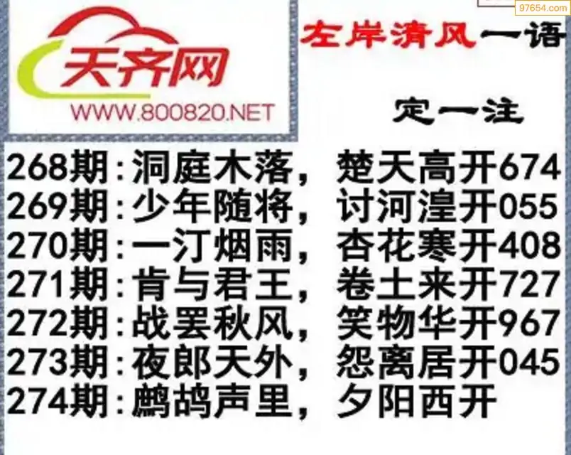 274期3D晚秋(乙种和值)谜:日为两数 D:上游河尾