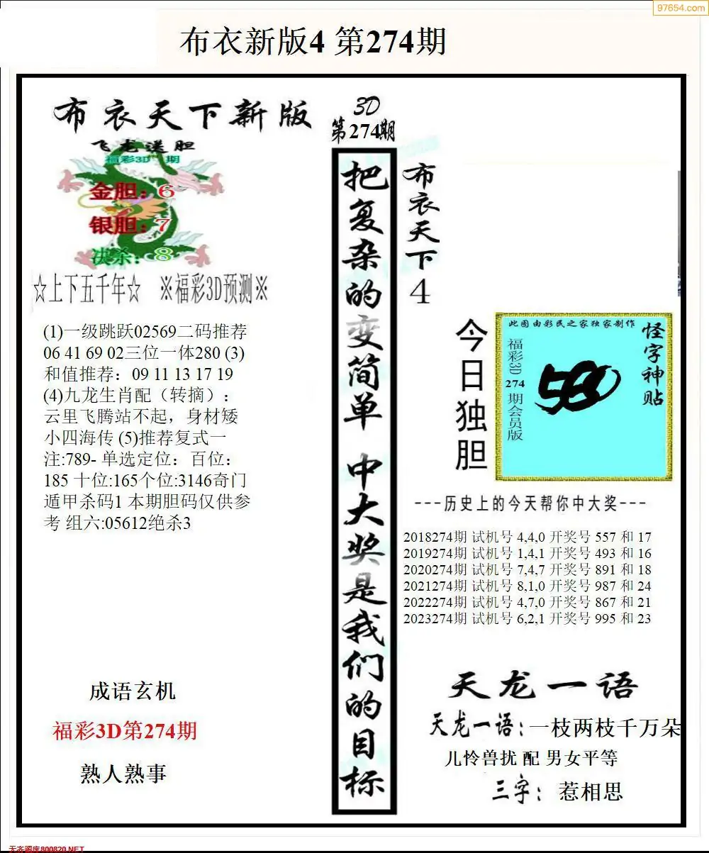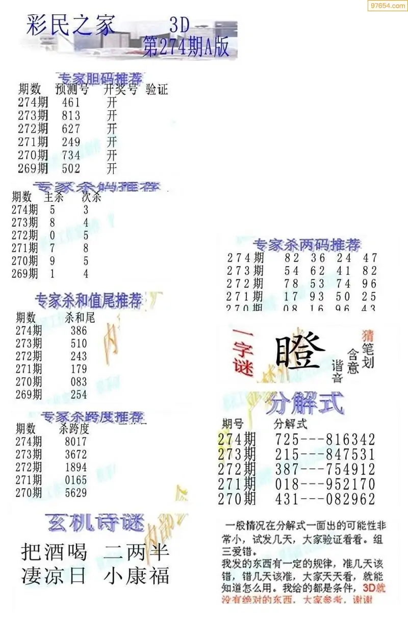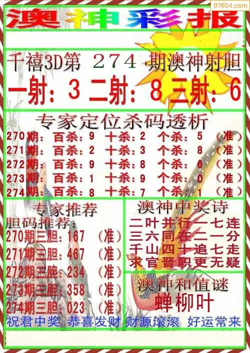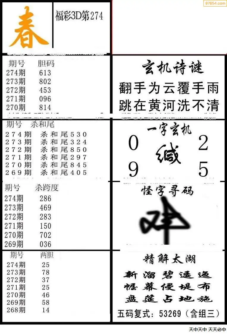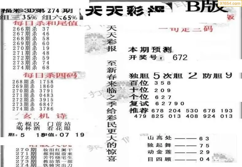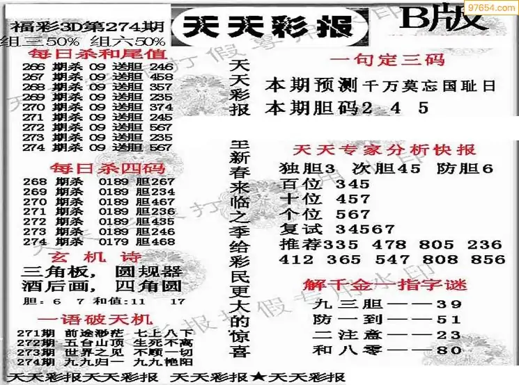 (8)25年274期今日3d各类彩报汇总