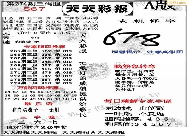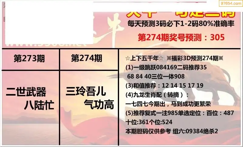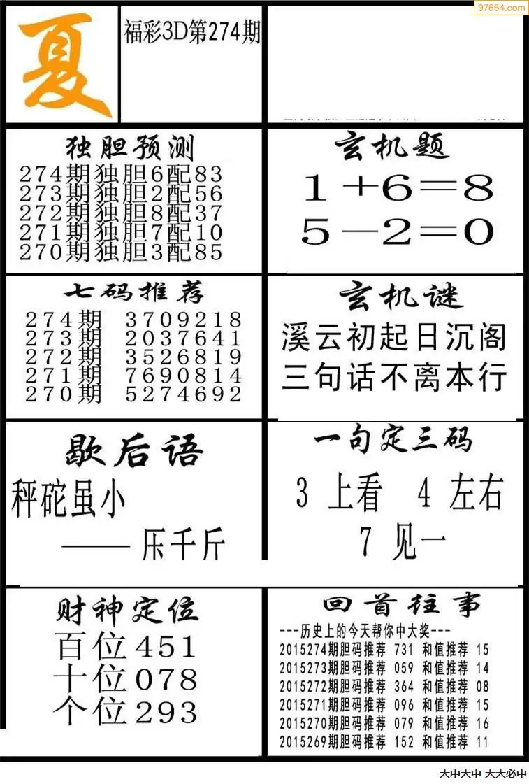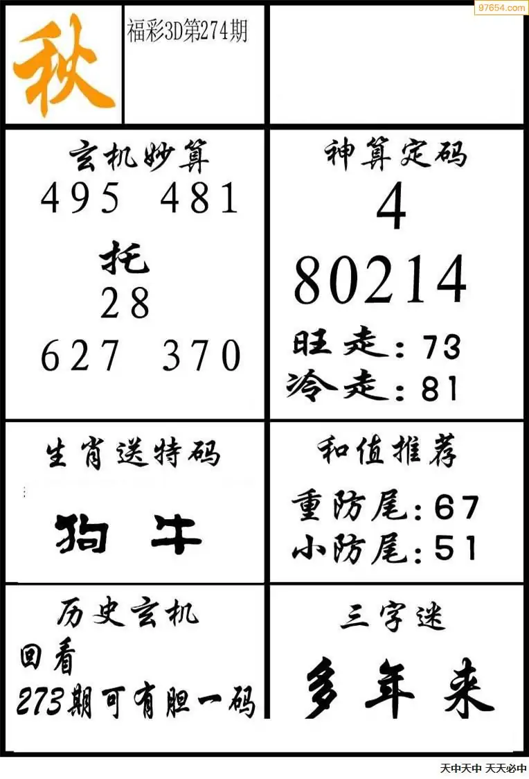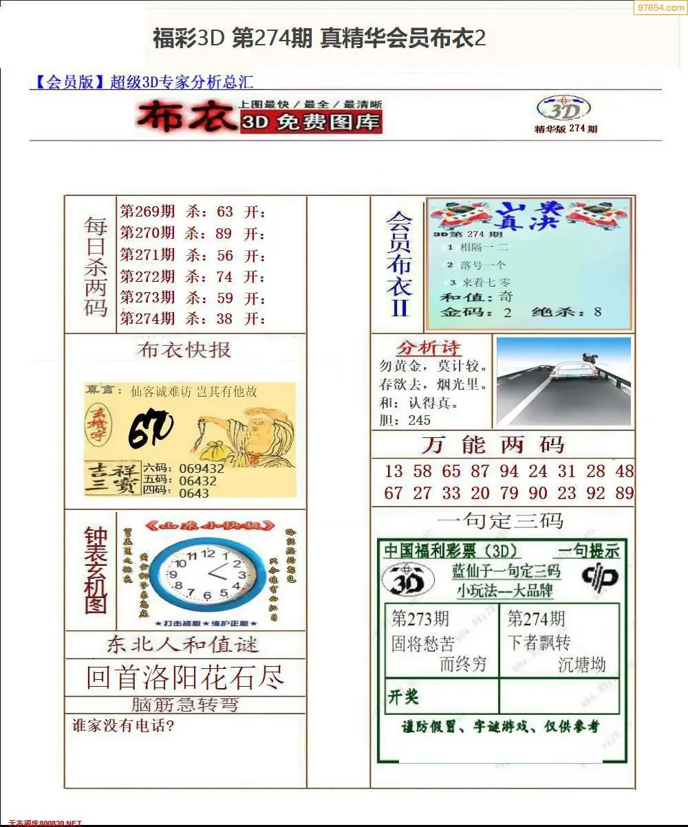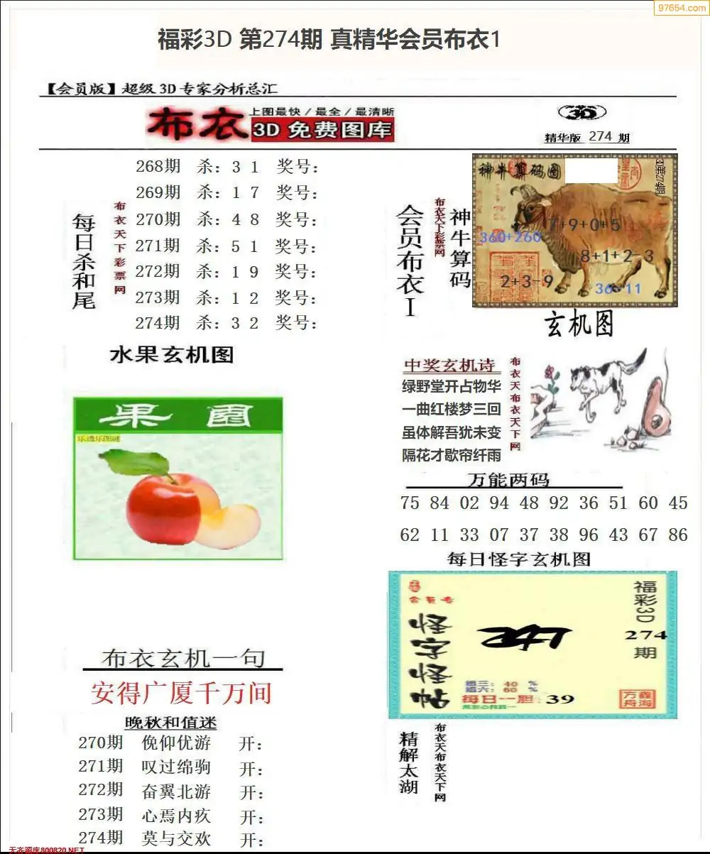 (8)25年274期今日3d各类彩报汇总