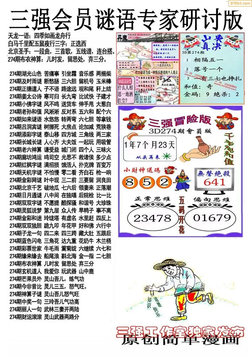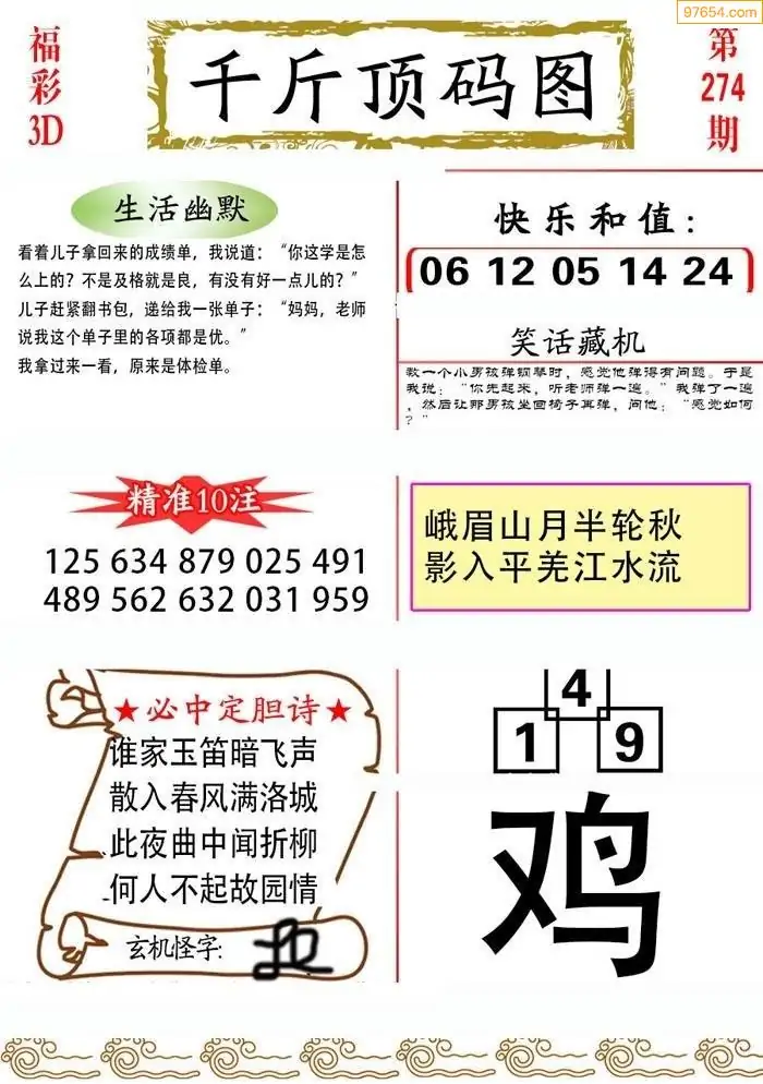 (5)25年274期福彩字谜图谜总汇