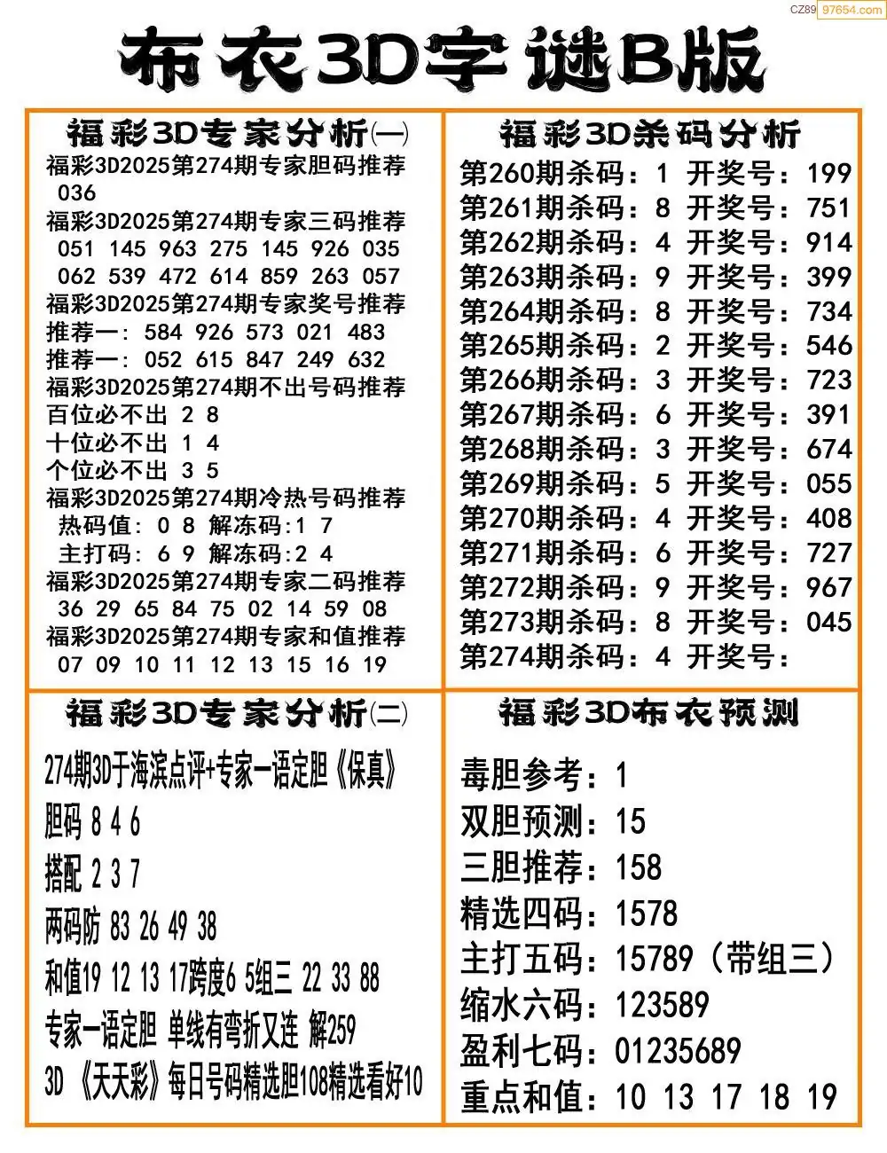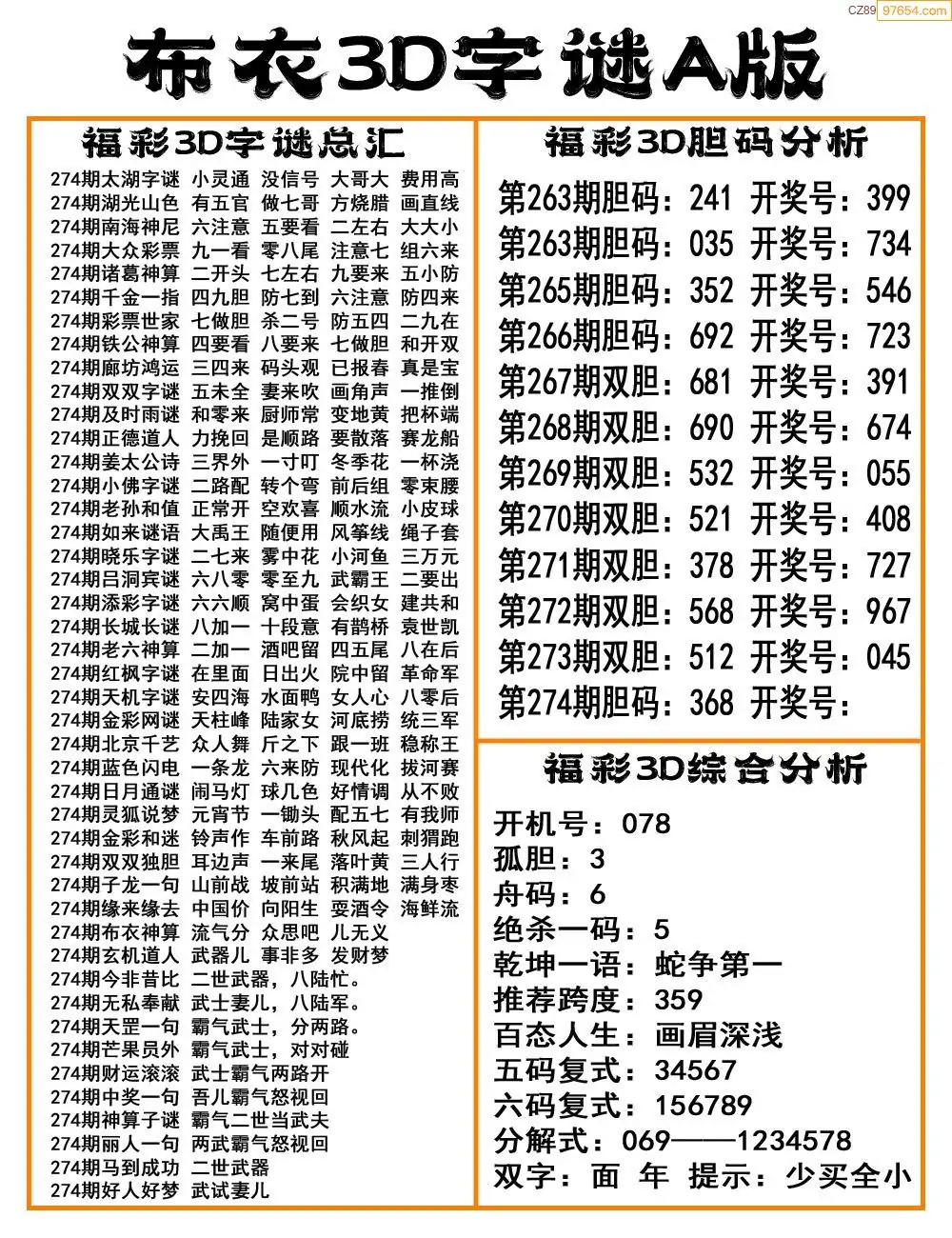 福彩25274期布衣3d字谜ab