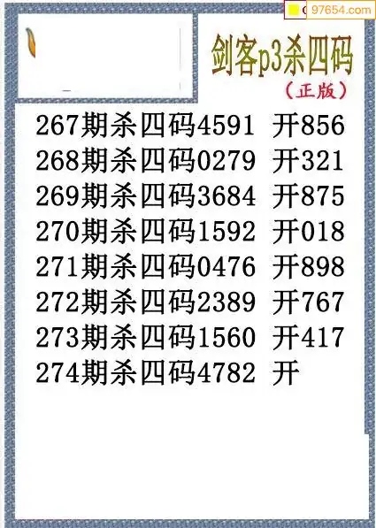 25年274期排三剑客杀码图谜