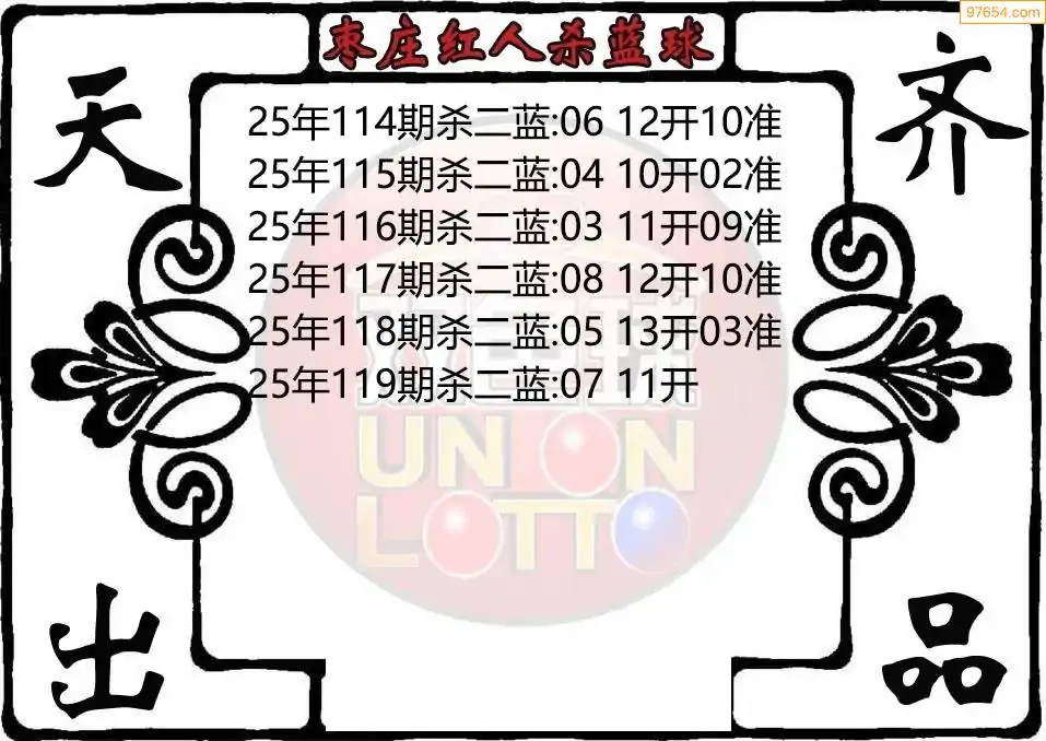 25年双色球119期枣庄红人杀二蓝图迷