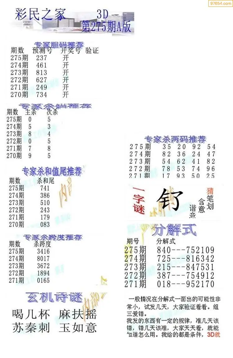25275期3D彩民各类资料A版
