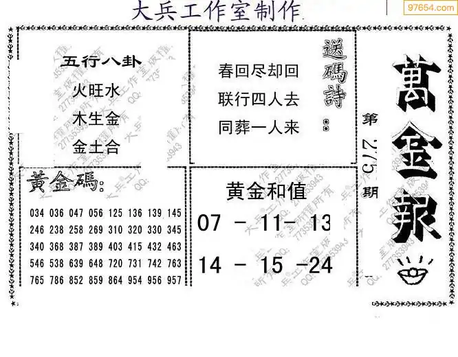 (5)25年275期福彩字谜图谜总汇