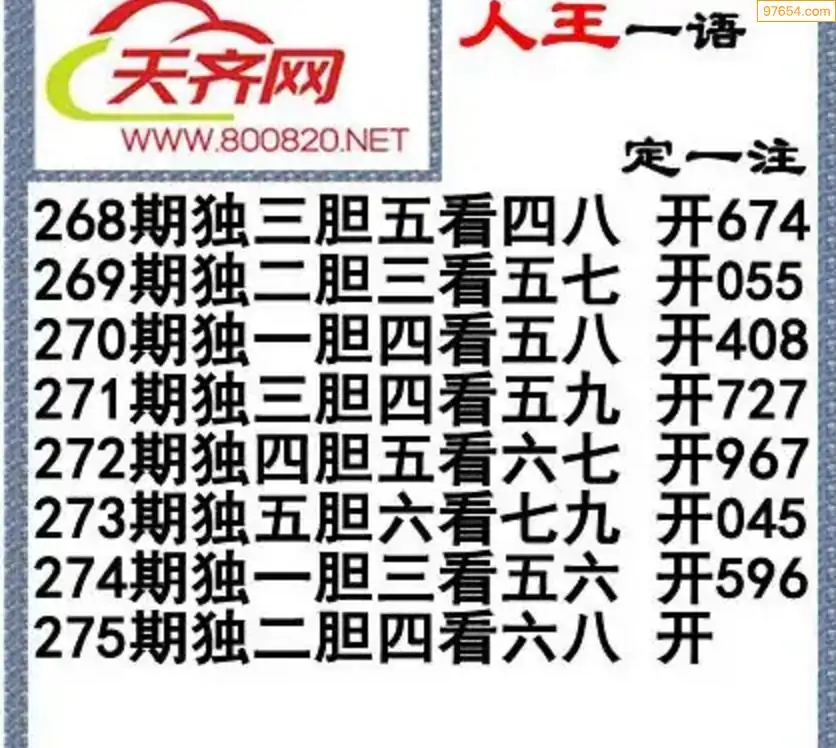 275期3D晚秋(和值)谜:妻尾钱衣 D:和尾看胆