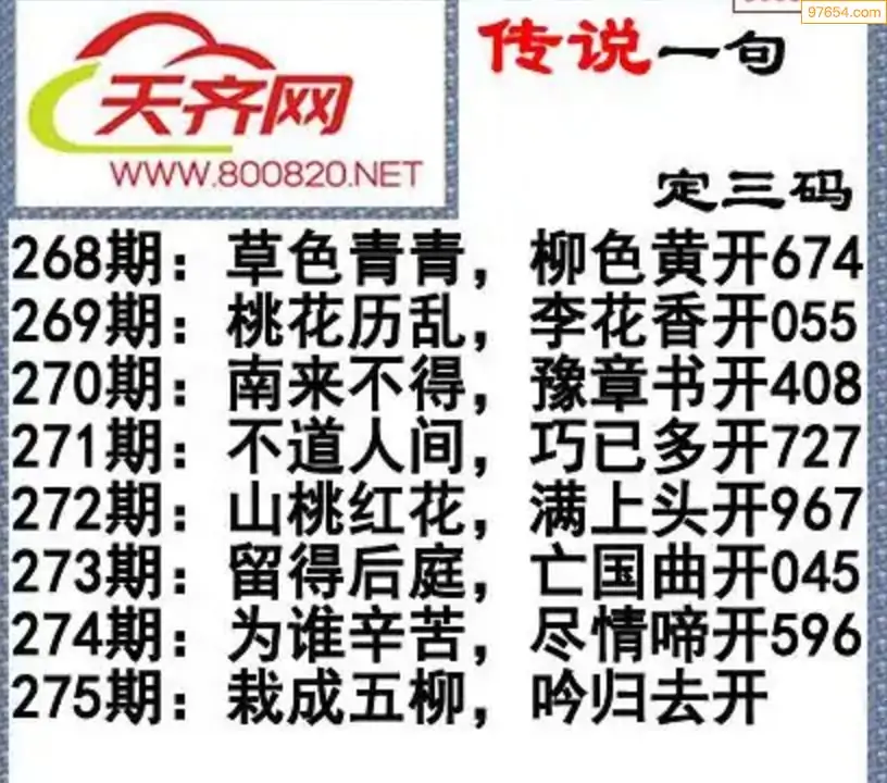 福彩3d25年275期字谜传说一句定三码