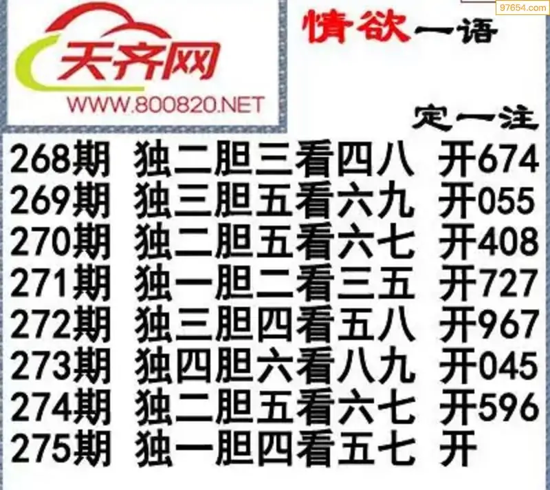 275期3D晚秋(和值)谜:妻尾钱衣 D:和尾看胆