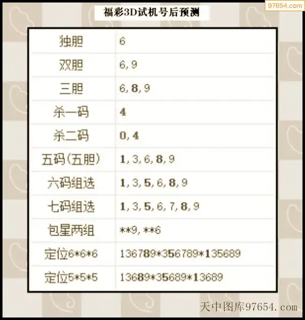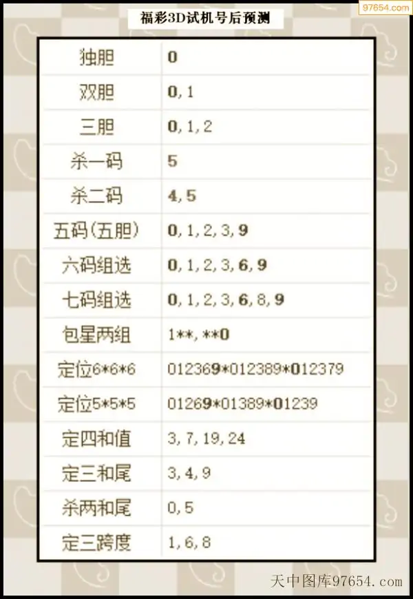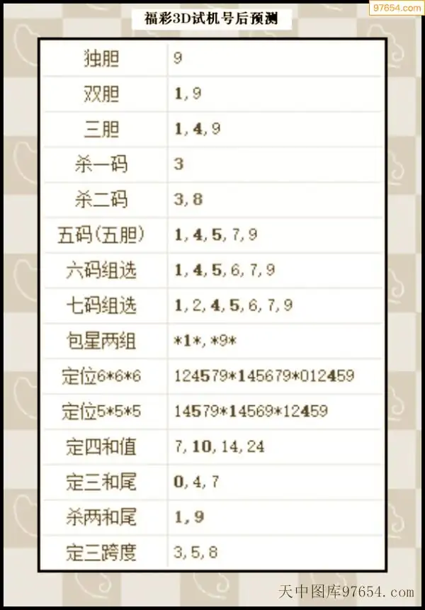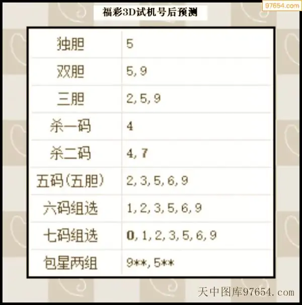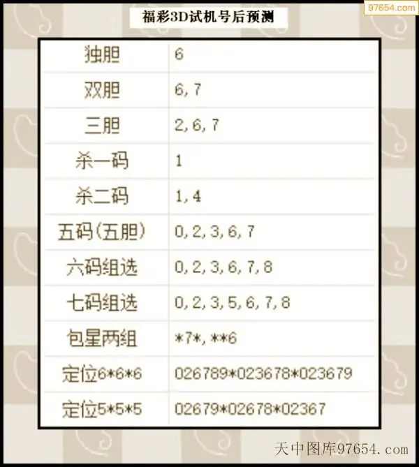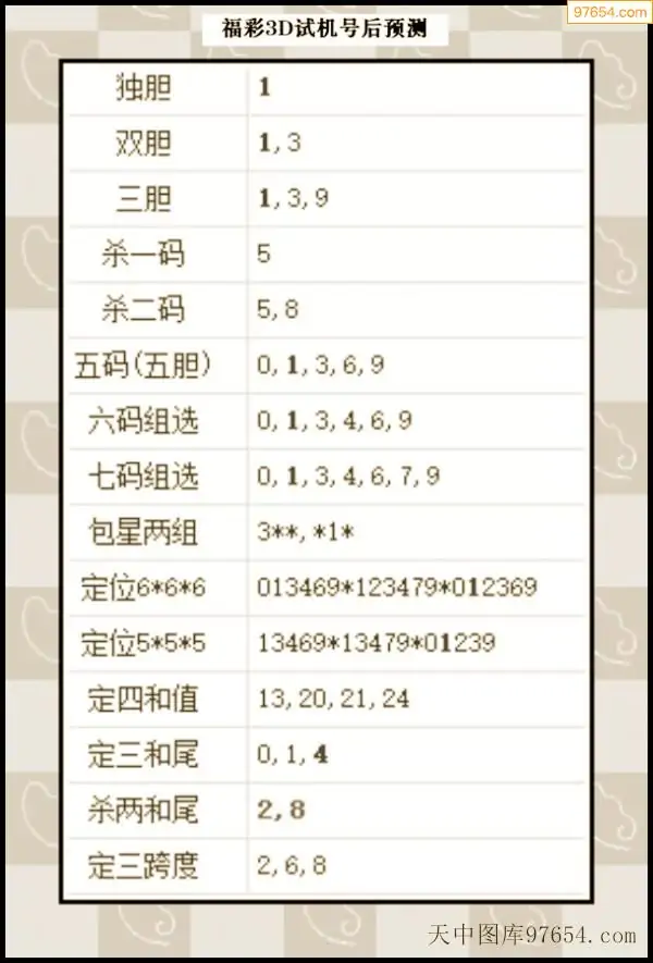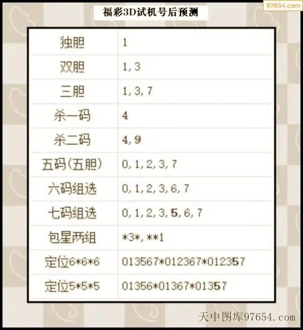 25年342期天中图库专家3D试机号后分析汇总
