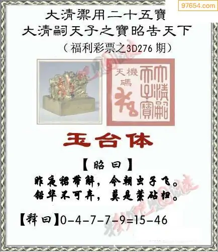 25276期福彩3D正版天宇和值谜